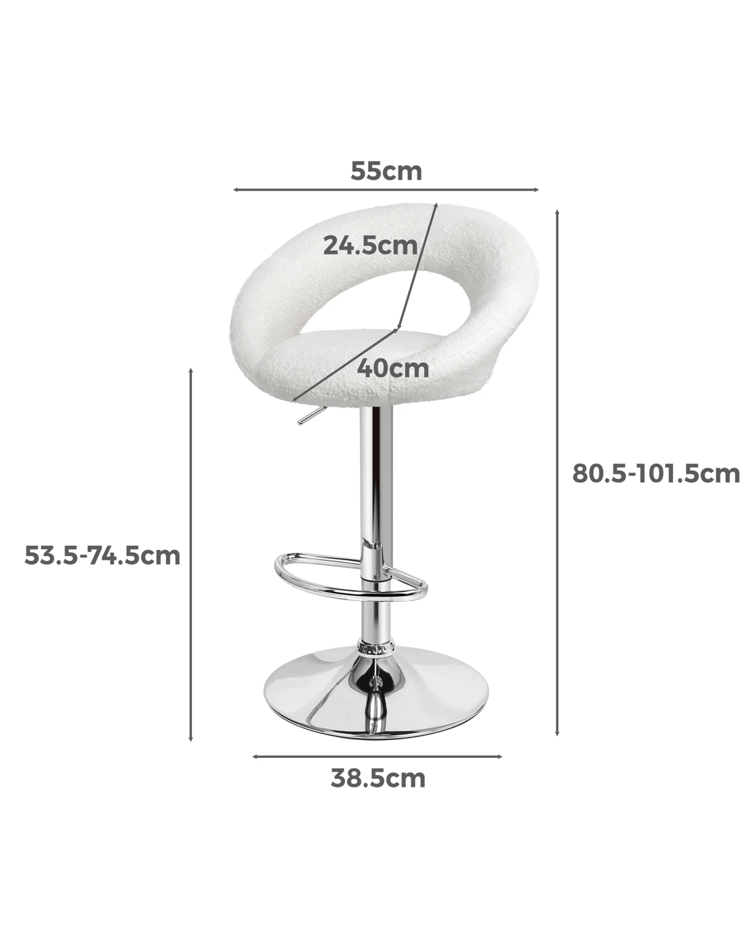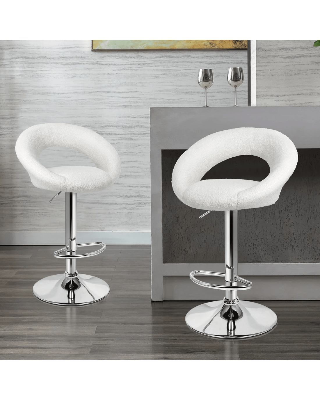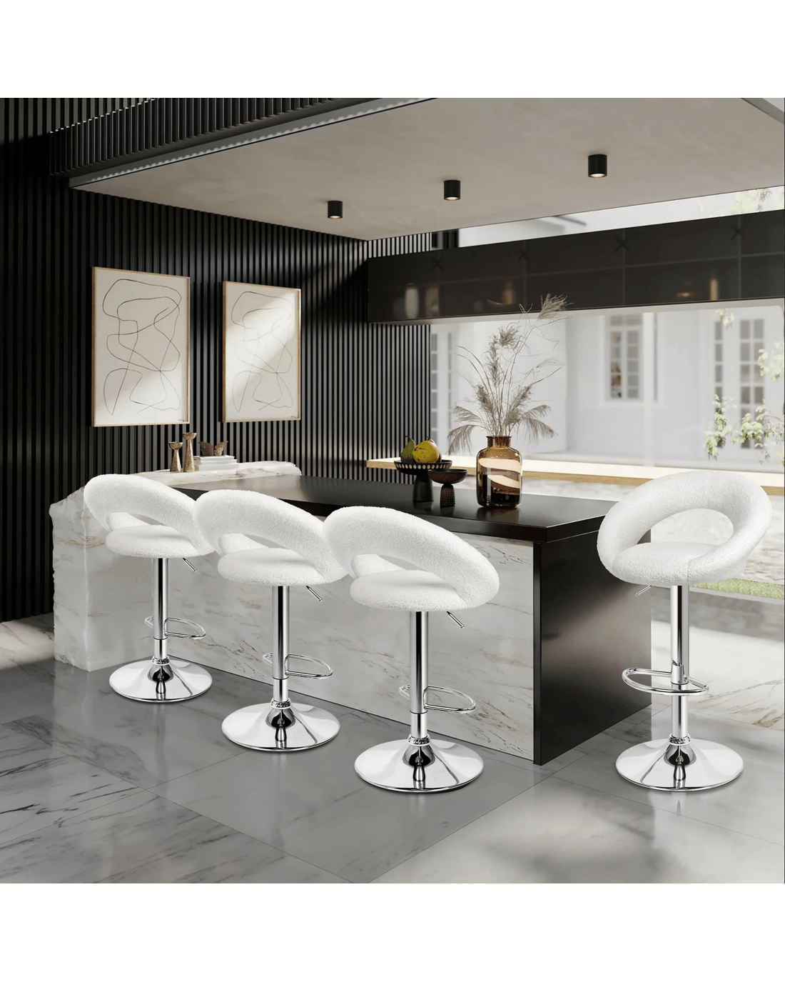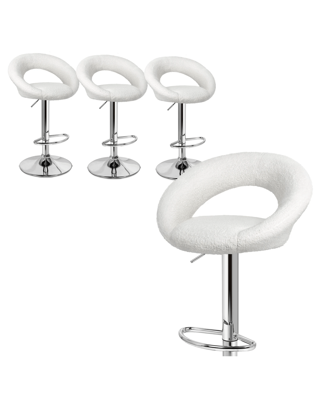Alfordson 4x Bar Stools Ovadia Kitchen Swivel Chair Boucle Gas Lift - White
