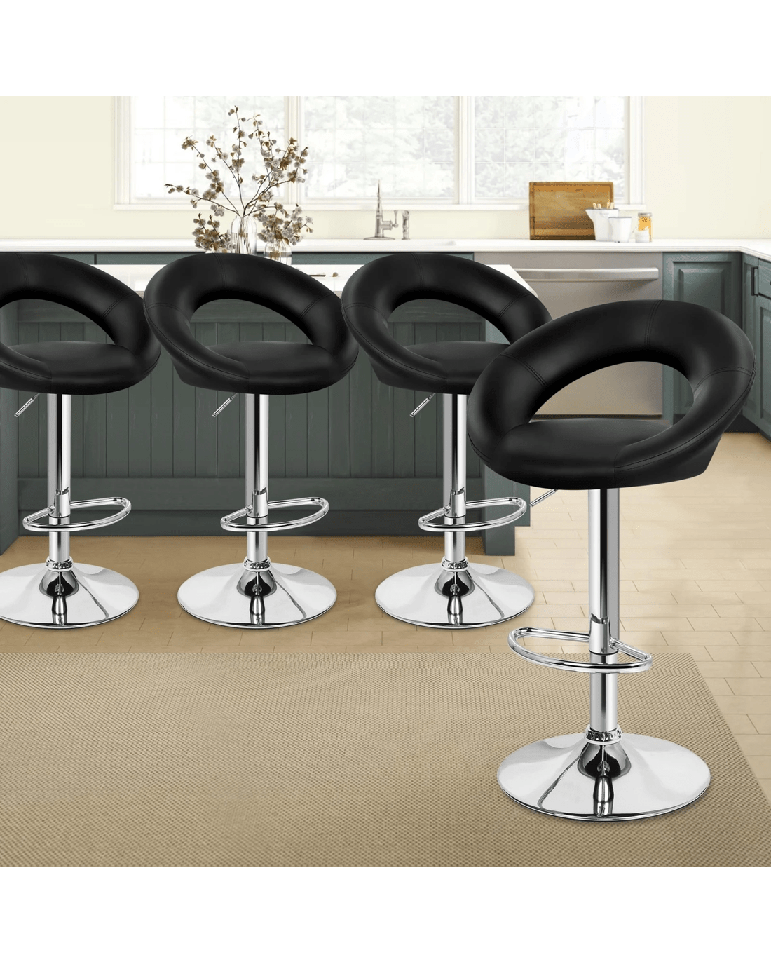 Alfordson 4x Bar Stools Ovadia Kitchen Swivel Chair Leather Gas Lift - Black