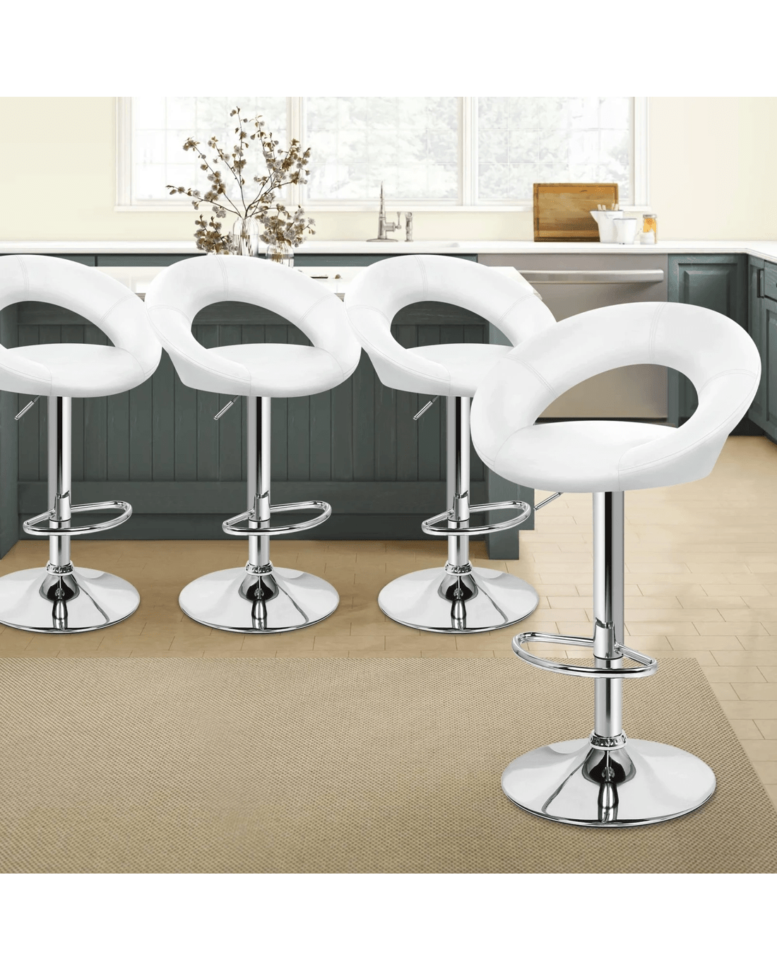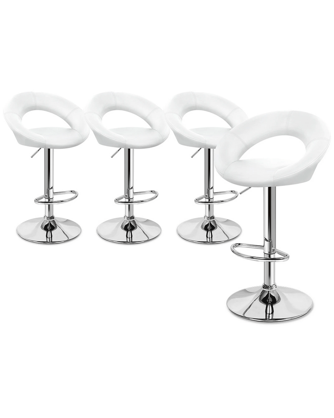 Alfordson 4x Bar Stools Ovadia Kitchen Swivel Chair Leather Gas Lift - White