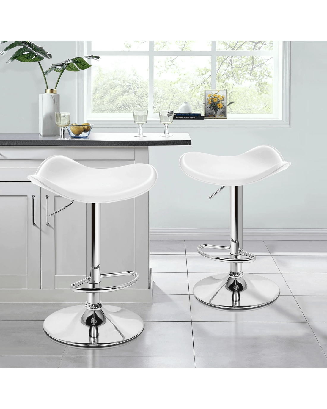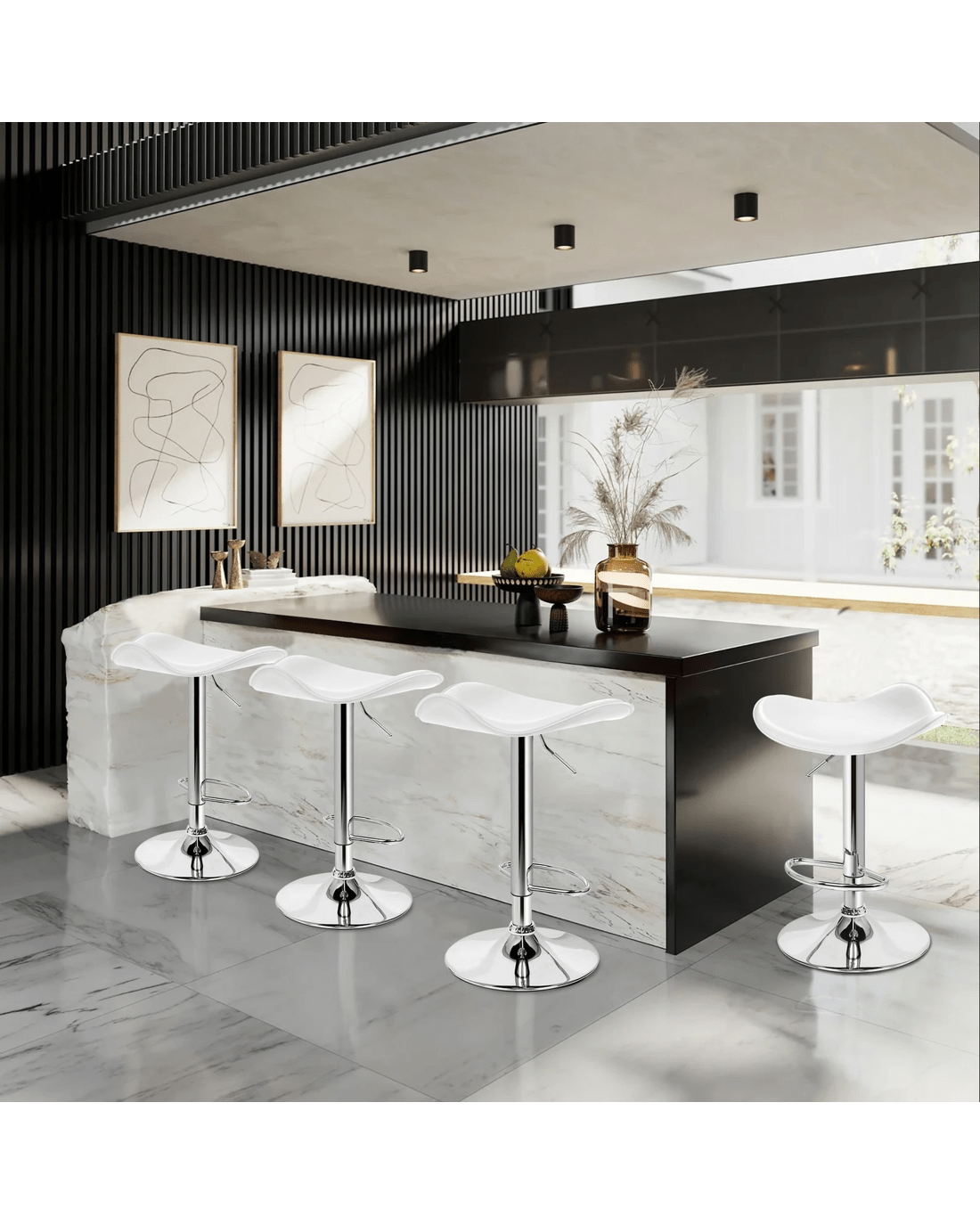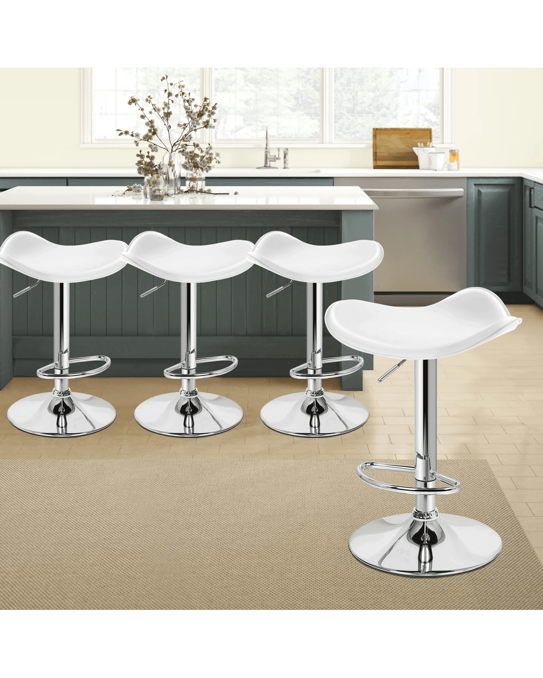 Alfordson 4x Bar Stools Portia Kitchen Swivel Chair Leather Gas Lift - White