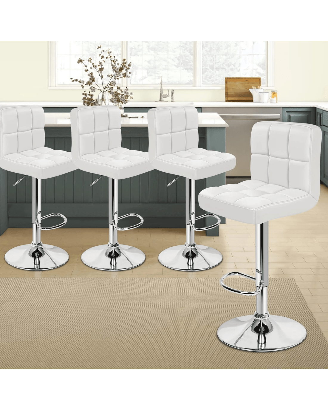 Sold by Aussie Union GroupAlfordson 4x Bar Stools Ralph Kitchen Swivel Chair Leather Gas Lift - White