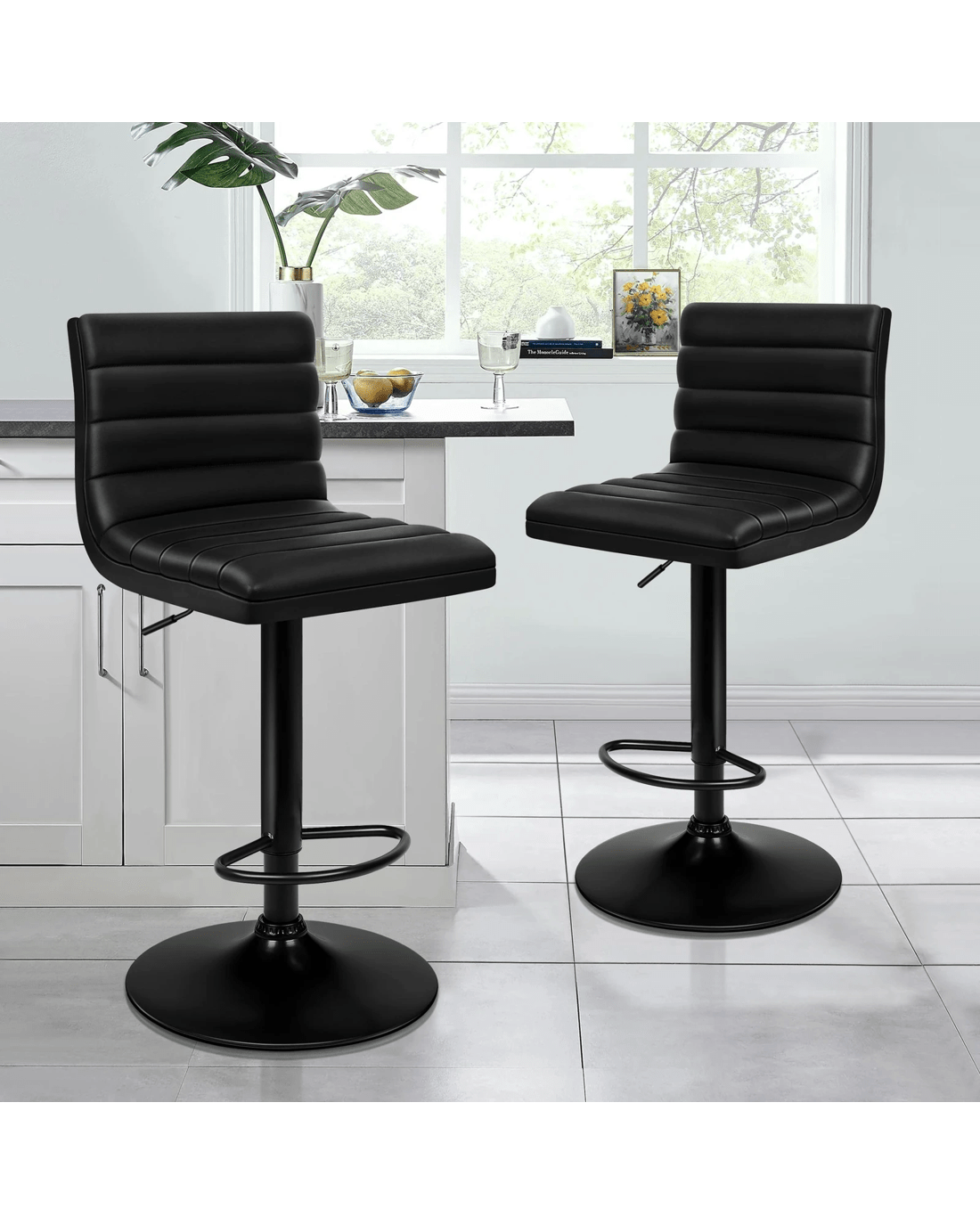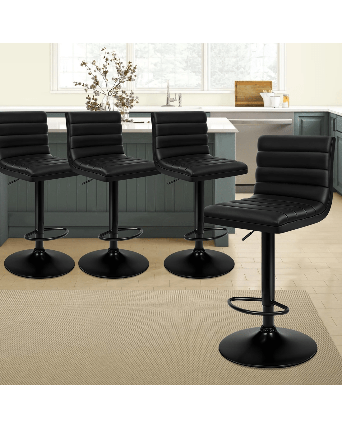 Alfordson 4x Bar Stools Ruel Kitchen Swivel Chair Leather Gas Lift - Black