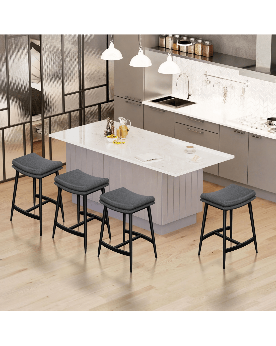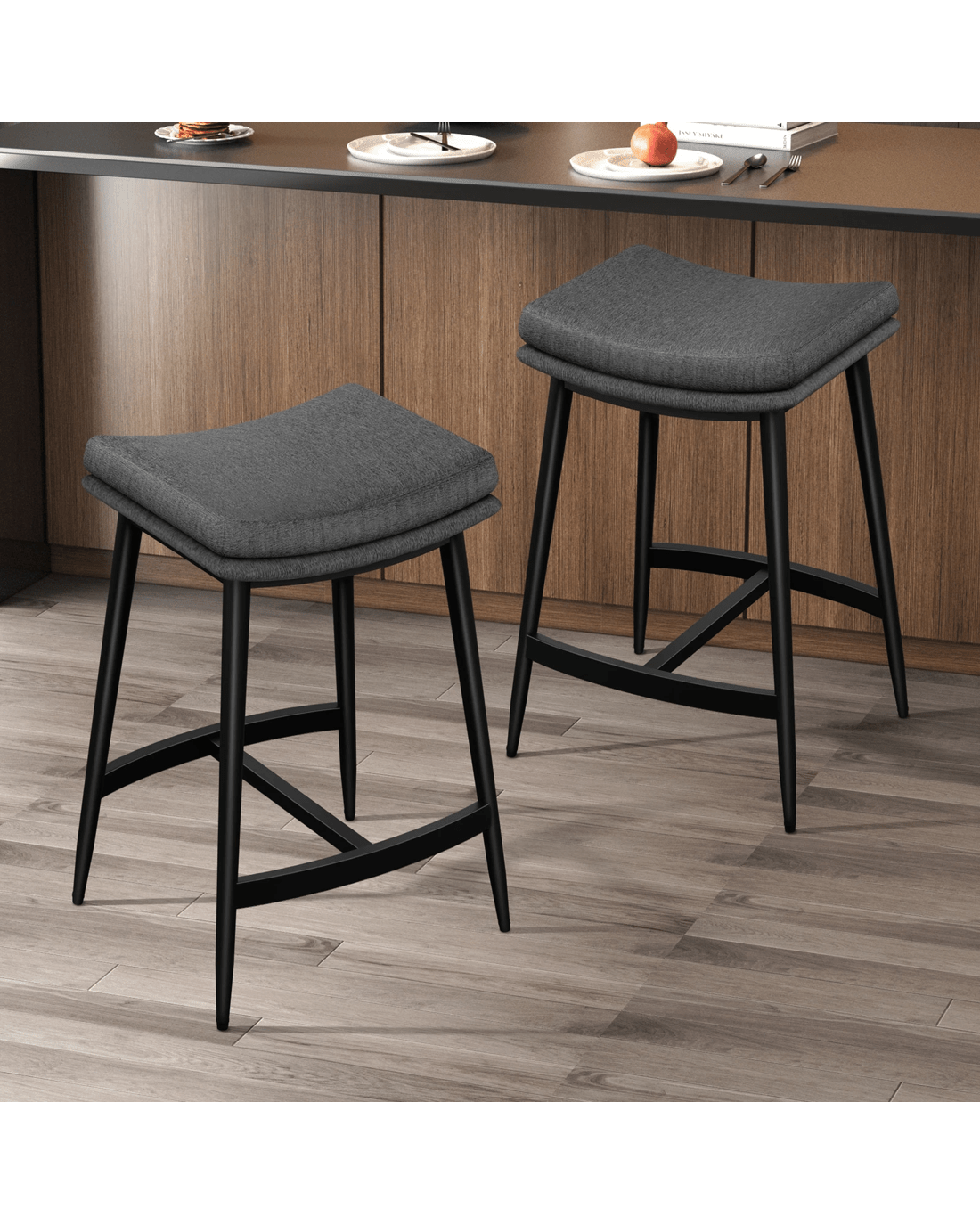 Backless barstool often gives a cleaner and sleeker look. They are also perfect if you are looking to save space and prefer to keep stools hidden beneath your counter. Compared with traditional designs, this low back bar stool's streamlined design can reduce vertical space occupation by up to 65%, a magician's trick that make your kitchen feel more spacious.