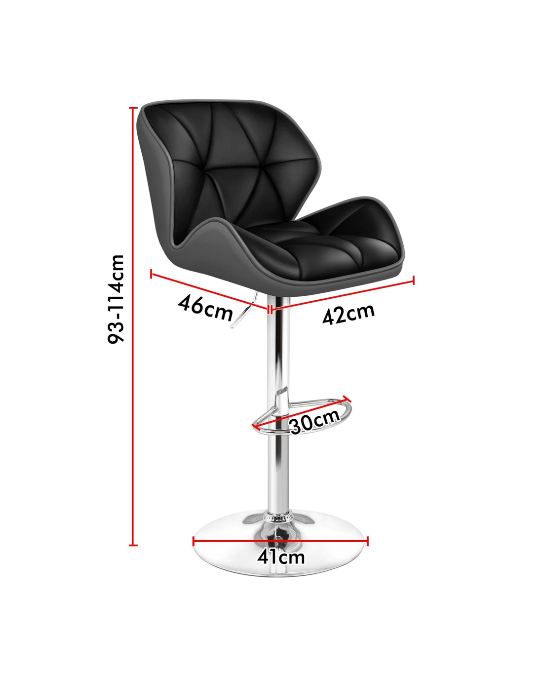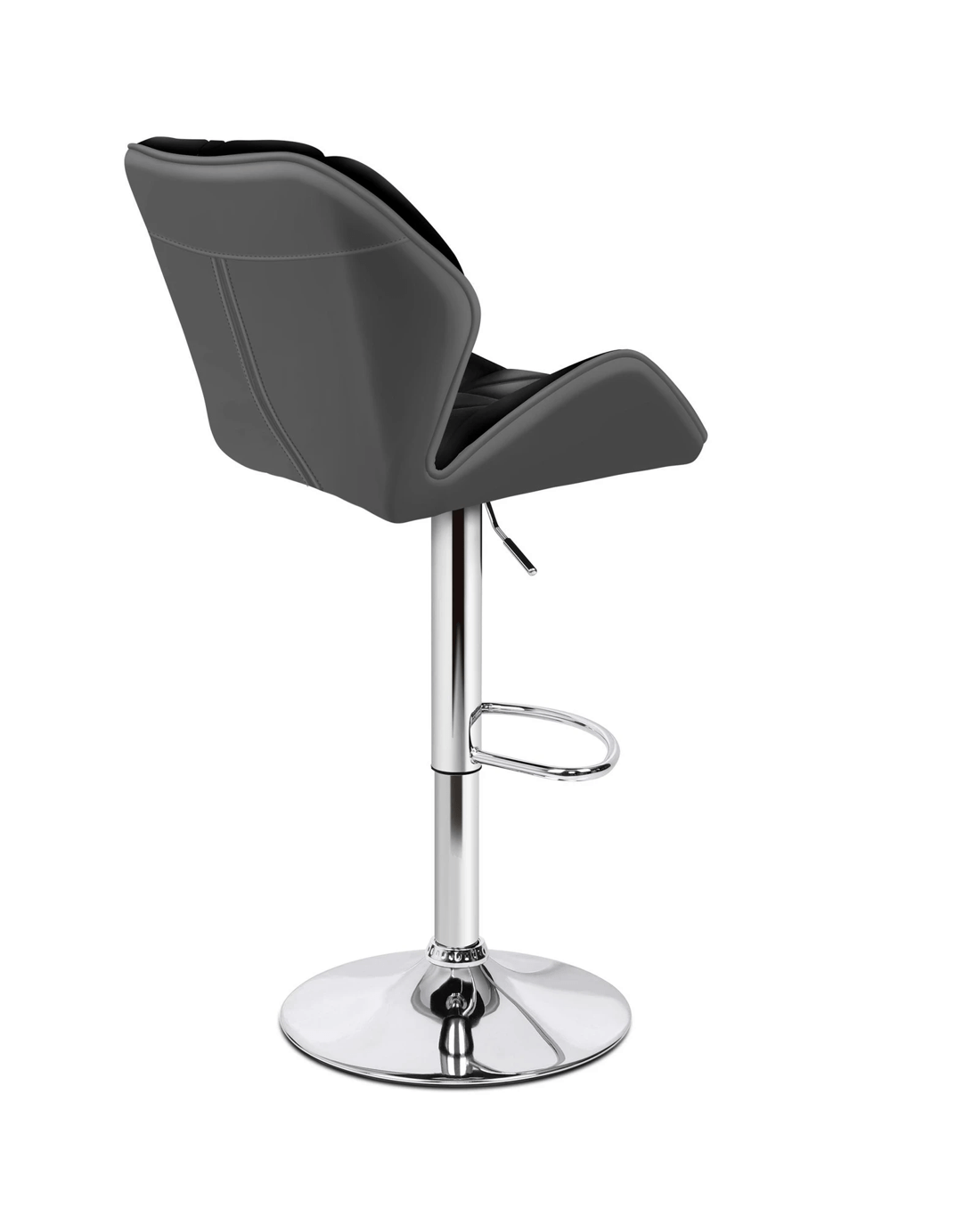 Upholstered in premium PU leather, the seat and backrest are richly padded with high-resilience foam. It presents a 360 degree swivel and adjustable seat height. The shiny chrome base and footrest complement the stool's modern design. A rubber floor protector ring reduces noise and protects your floor.