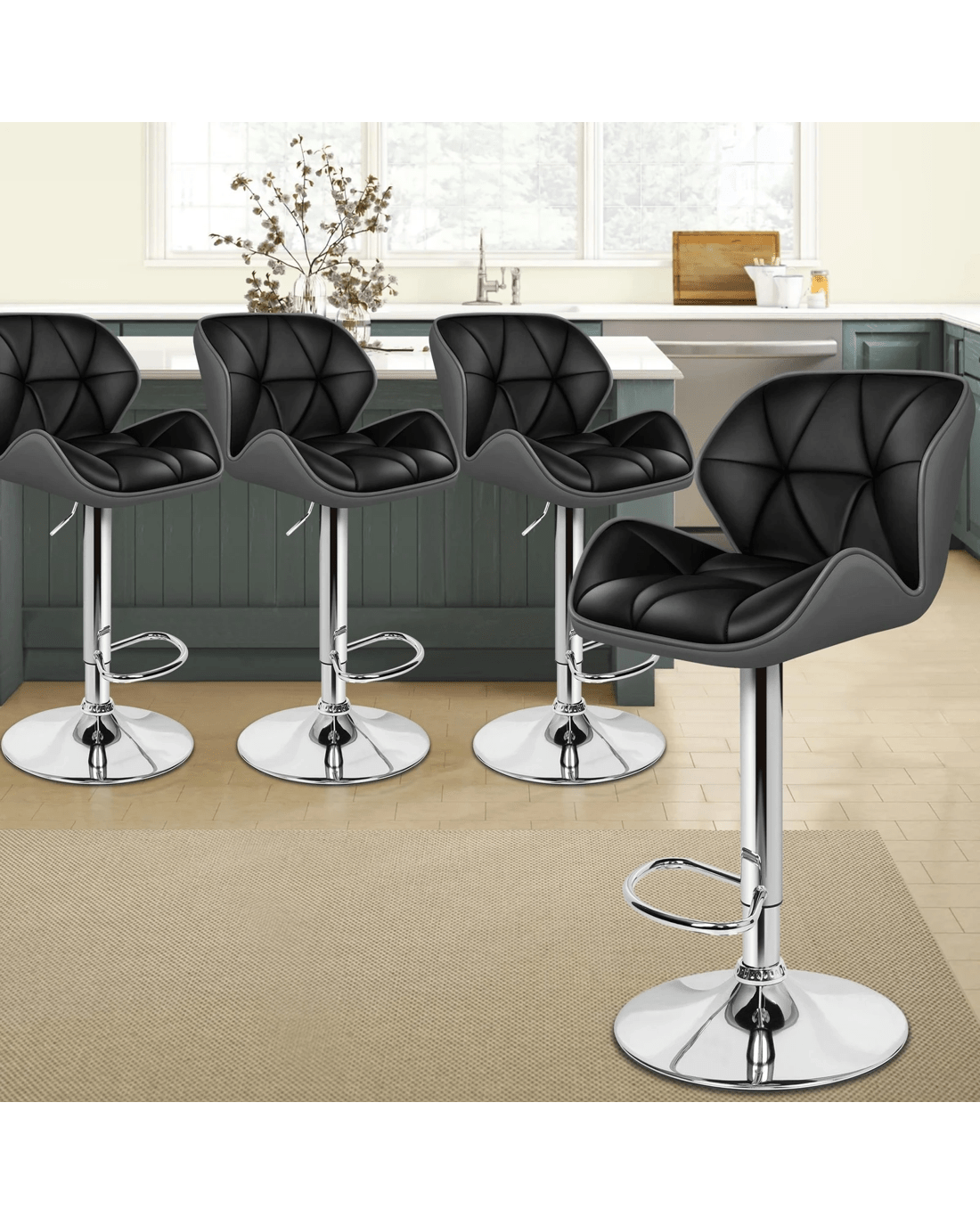 Sold by Aussie Union GroupAlfordson 4x Bar Stools Willa Kitchen Gas Lift Swivel Chair Leather - Black