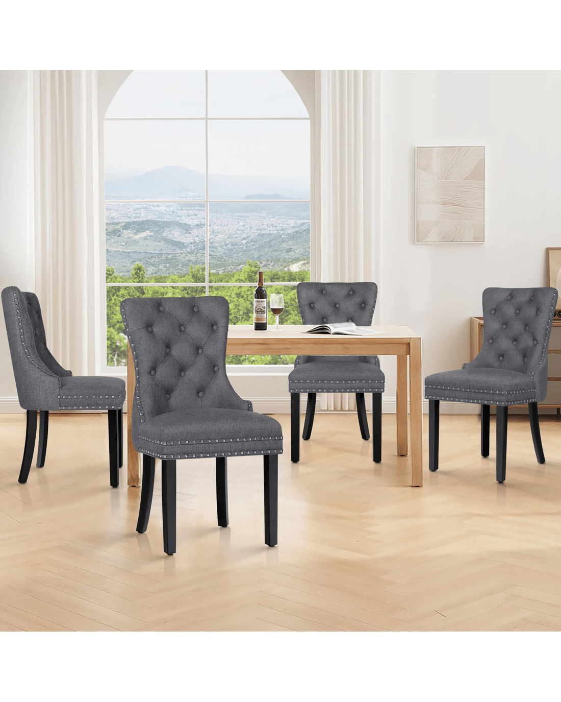 Ultimate comfort - Upholstered in premium linen fabric, the seat and backrest are generously padded with high-density foam, providing exceptional support and comfort. Combined with its ergonomically curved high-back design, our chair offers a delightful seating experience so that you and your guests can enjoy long, leisurely meals without discomfort.
