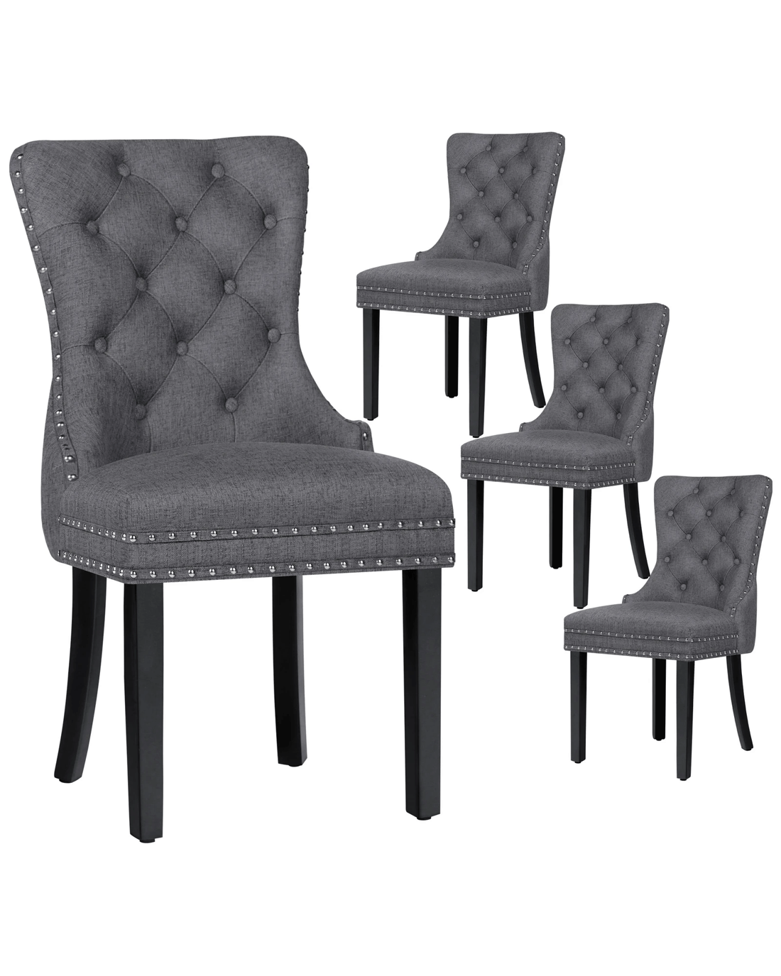 Sold by Aussie Union GroupAlfordson 4x Dining Chair Kitchen Lounge Retro Button Tufted Wooden Fabric - Grey