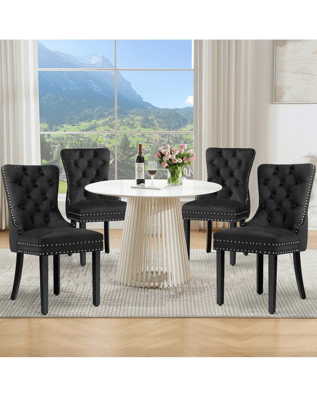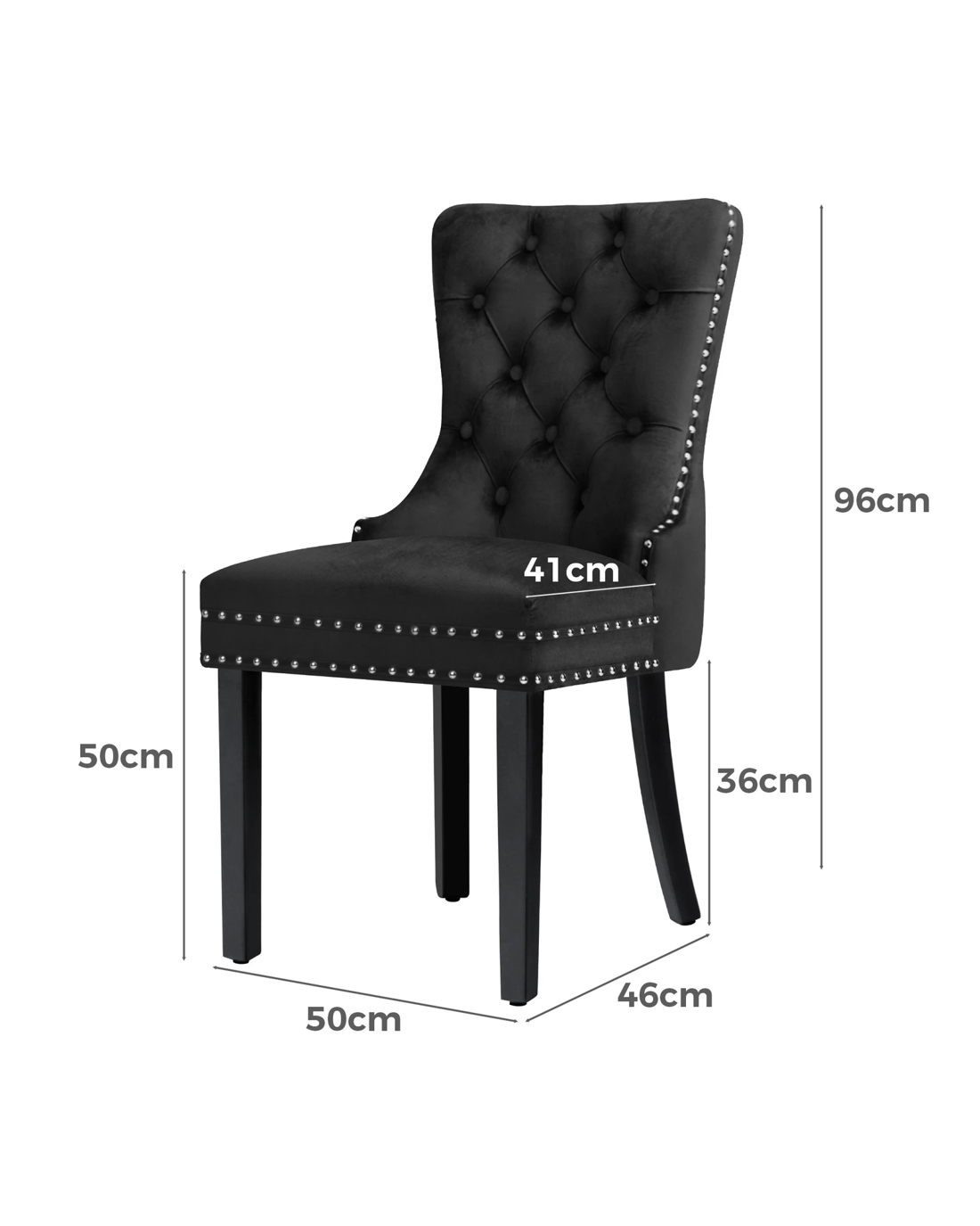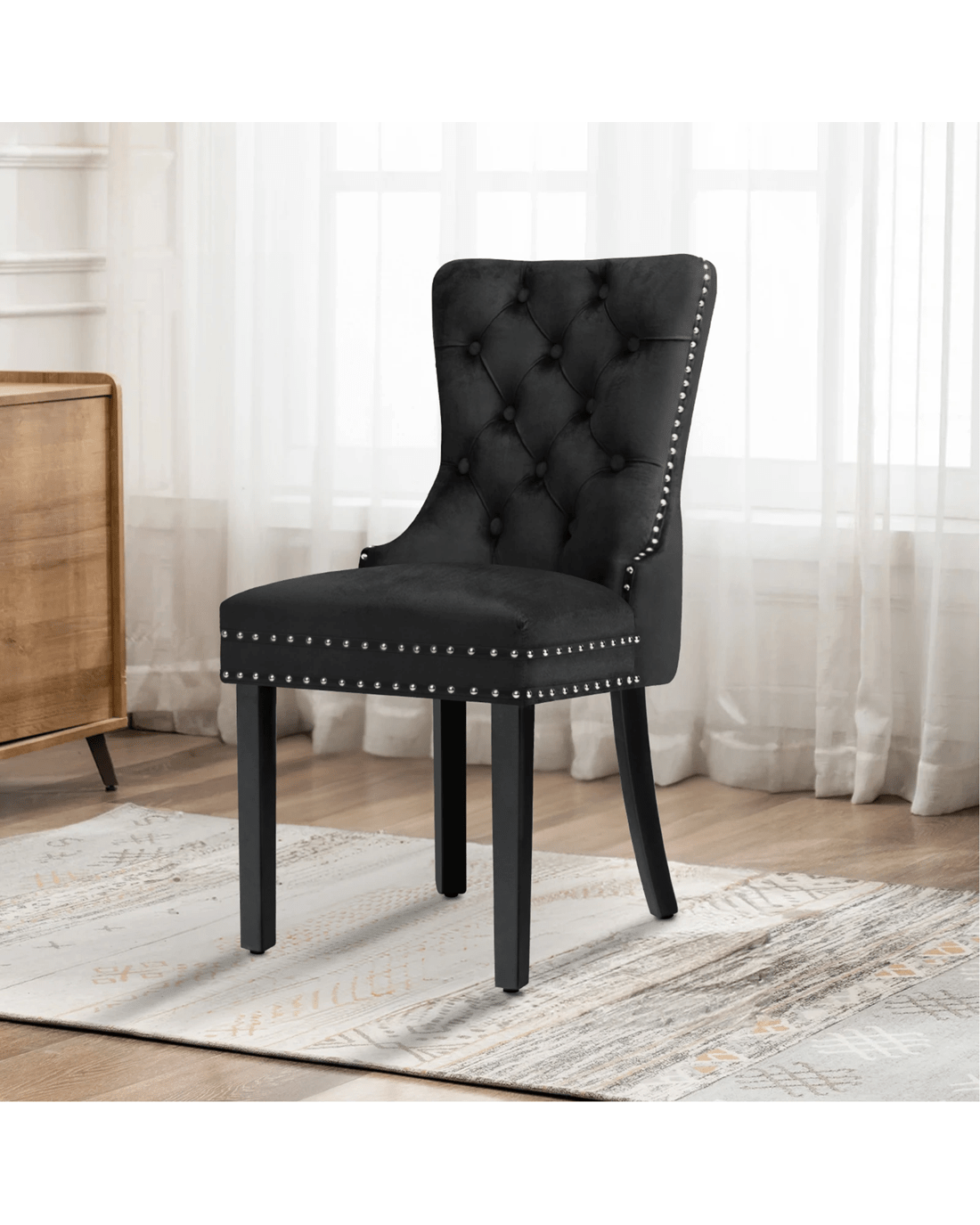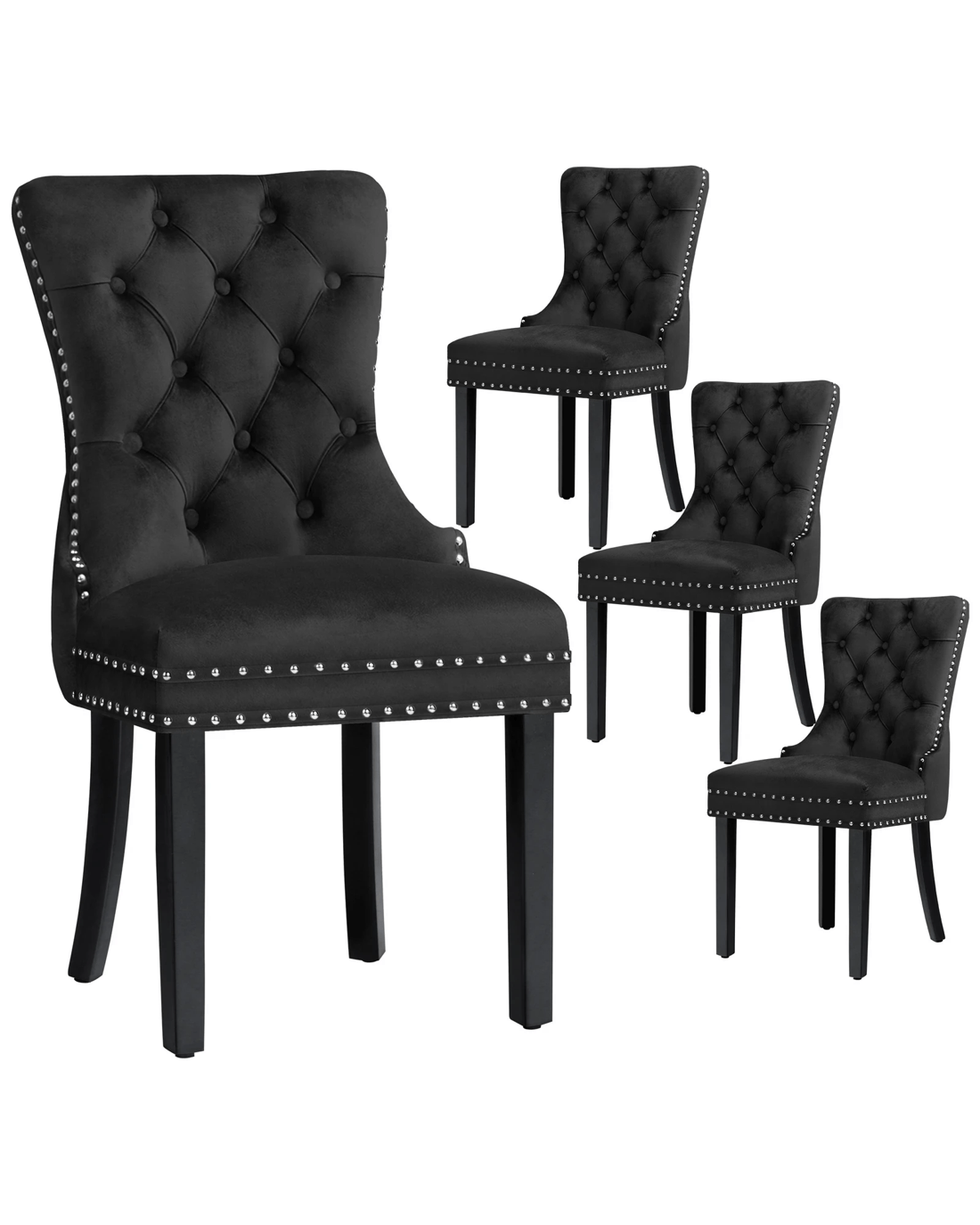 Sold by Aussie Union GroupAlfordson 4x Dining Chair Kitchen Lounge Retro Button Tufted Wooden Velvet - Black