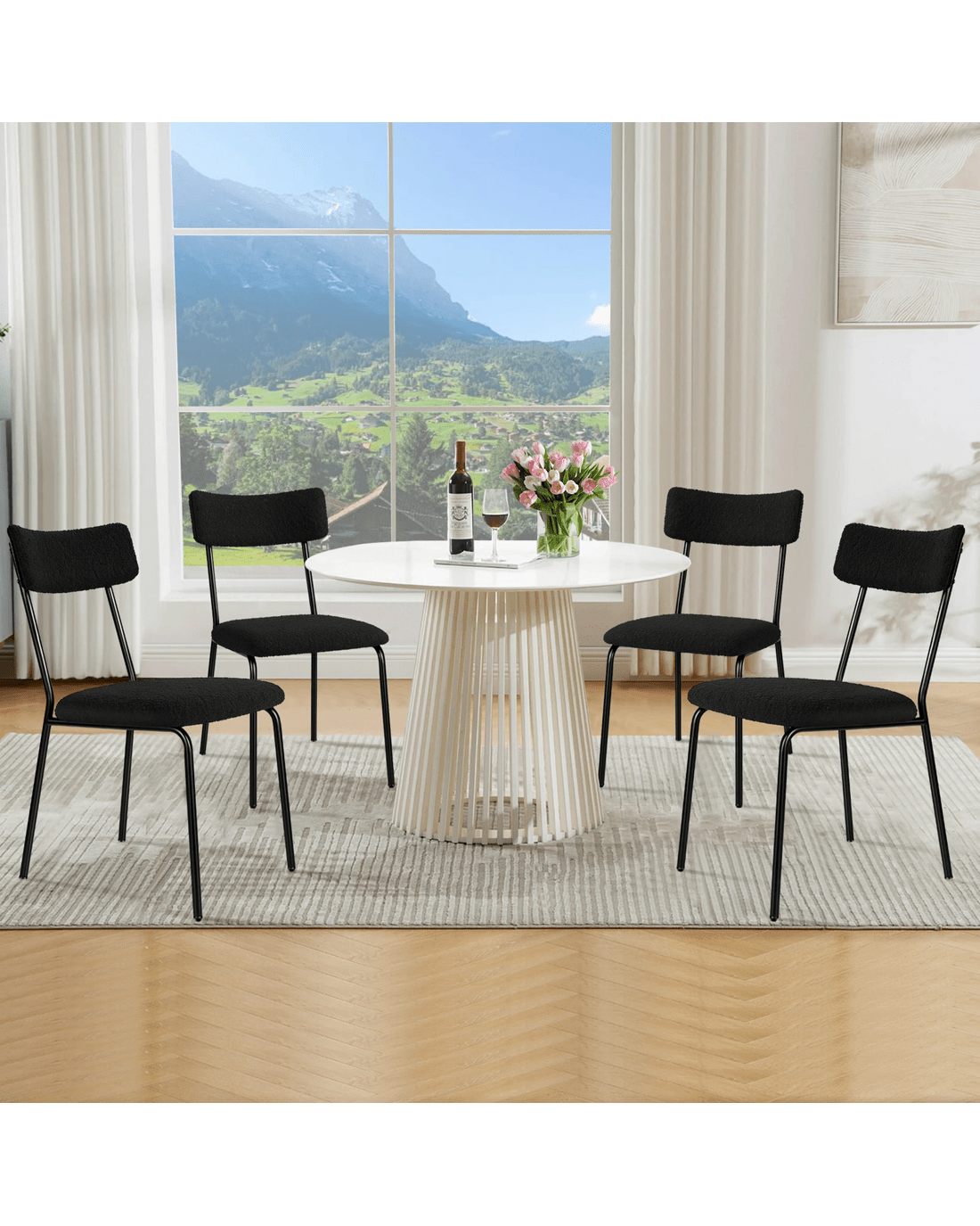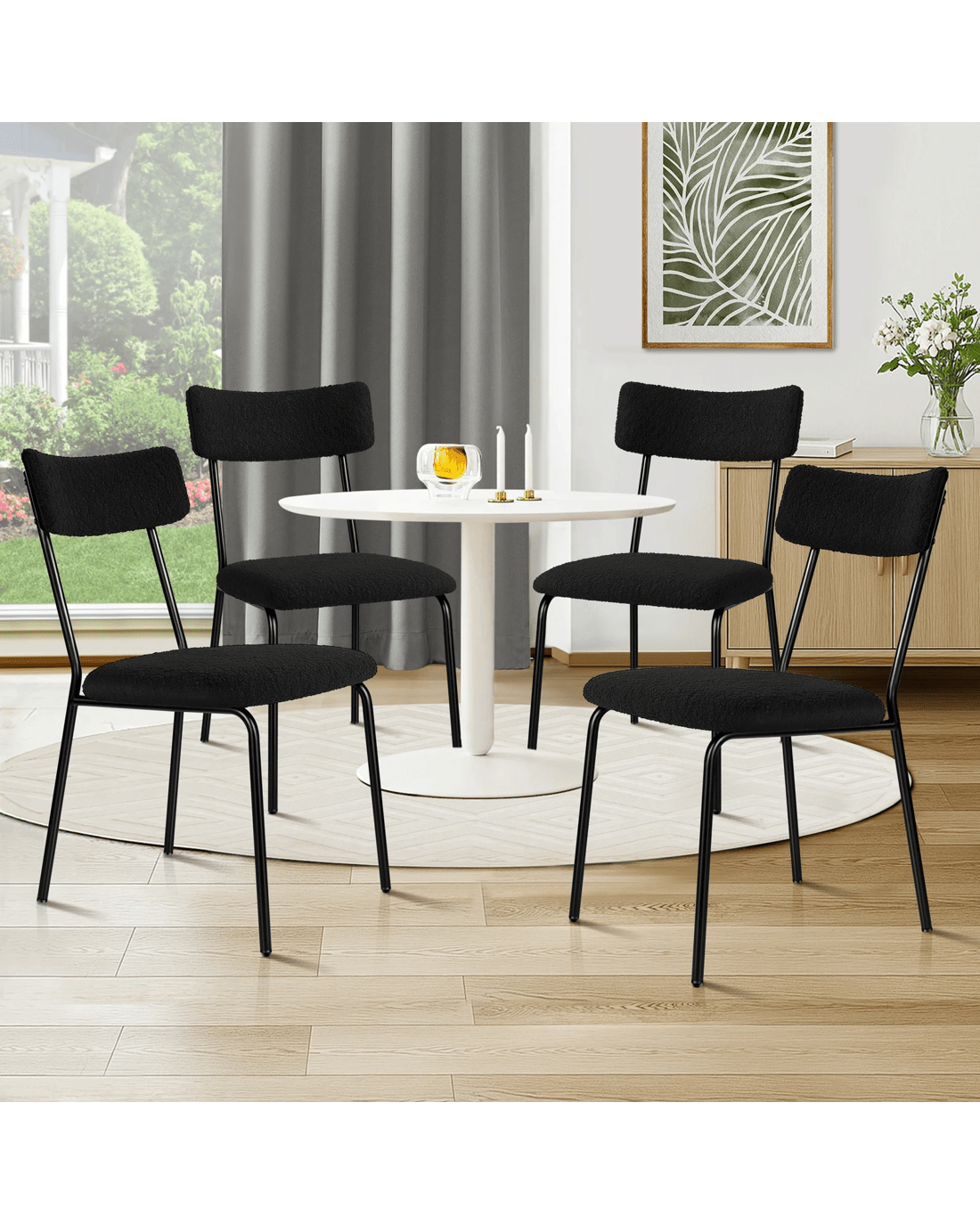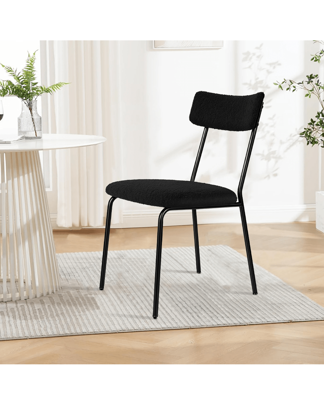 Ultimate comfort - Upholstered in premium sherpa fabric, the seat and backrest are generously padded with high-density foam, providing exceptional support and comfort. Combined with its ergonomic design, our chair offers a delightful seating experience so that you and your guests can enjoy long, leisurely meals without discomfort.