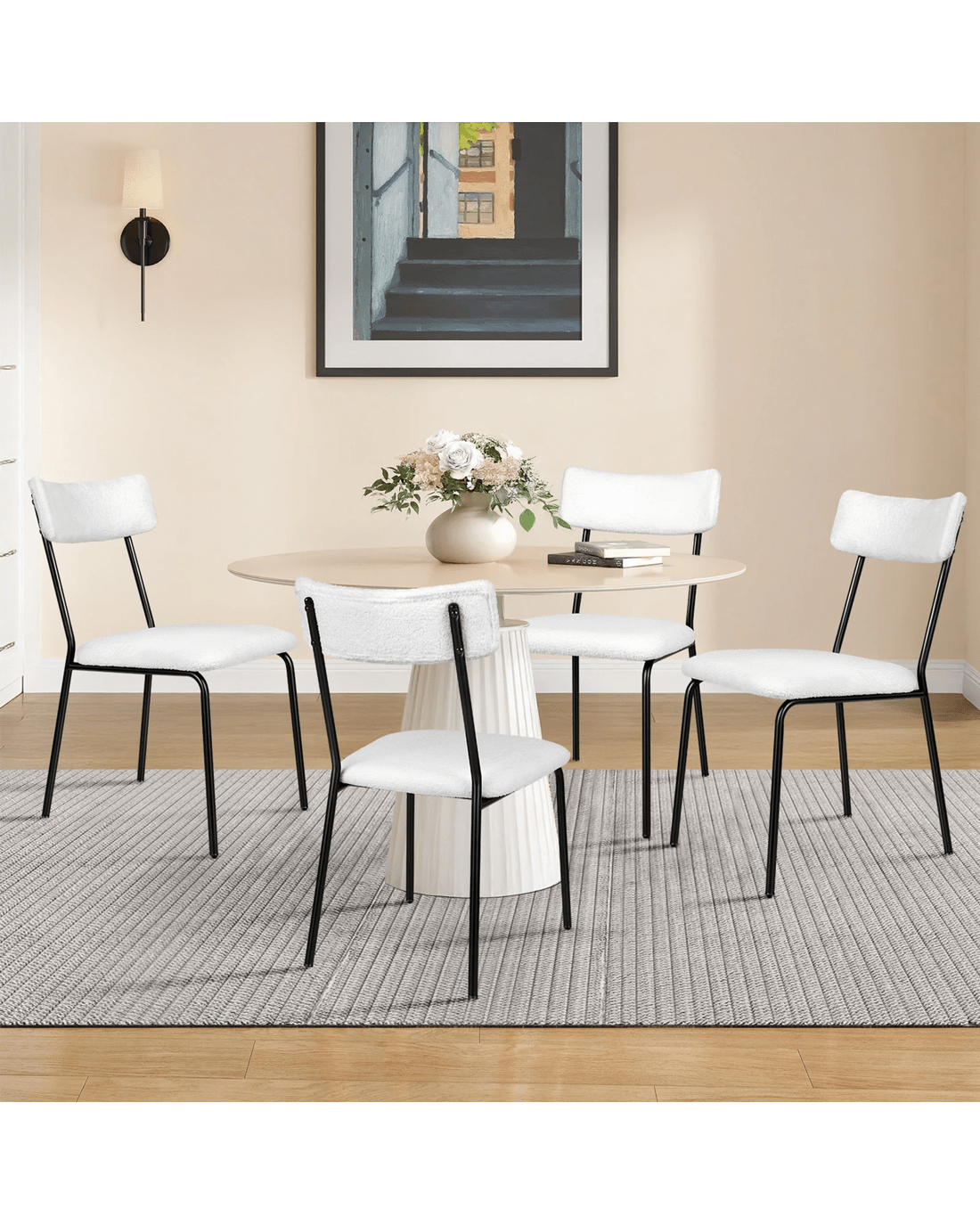 Ultimate comfort - Upholstered in premium sherpa fabric, the seat and backrest are generously padded with high-density foam, providing exceptional support and comfort. Combined with its ergonomic design, our chair offers a delightful seating experience so that you and your guests can enjoy long, leisurely meals without discomfort.
