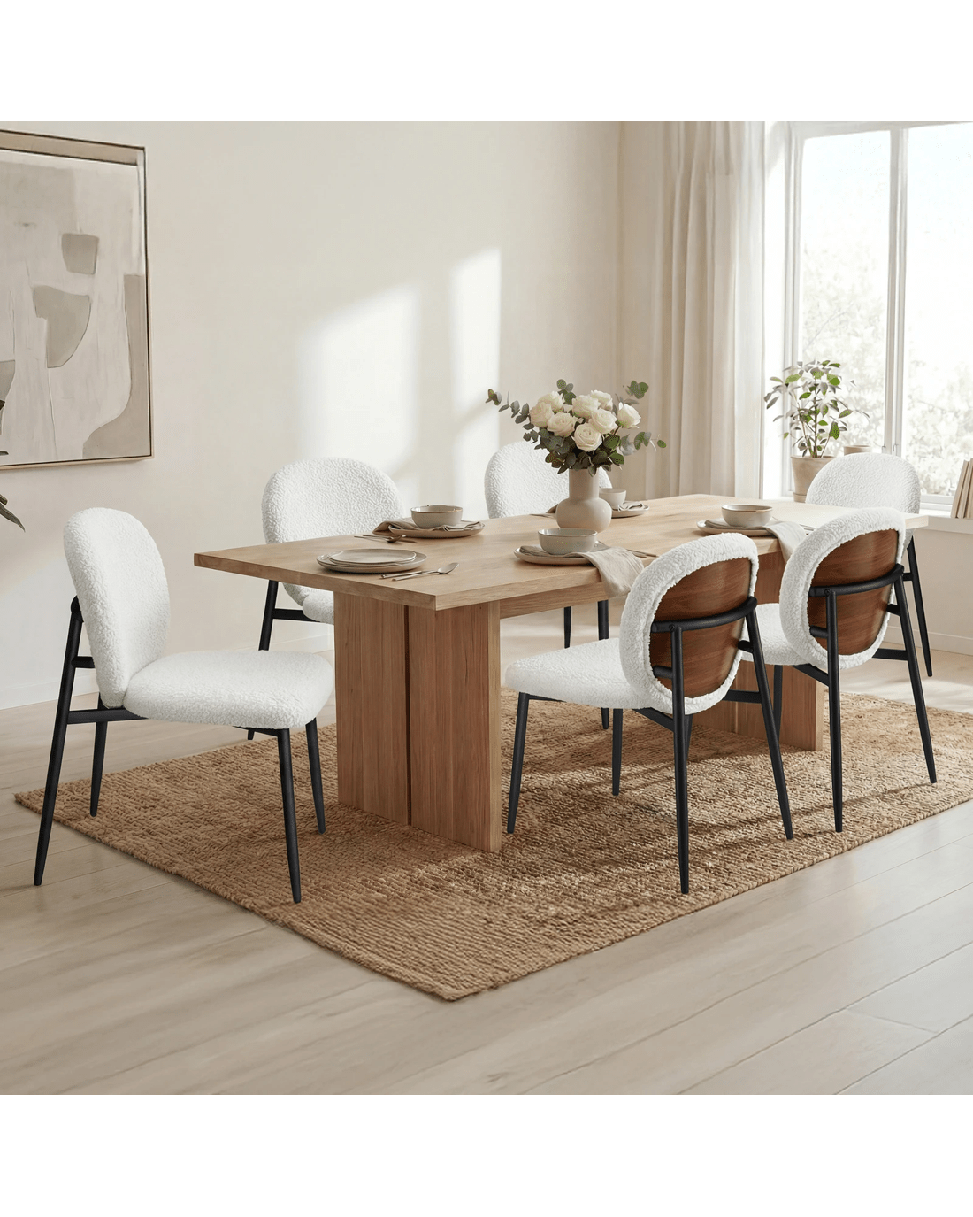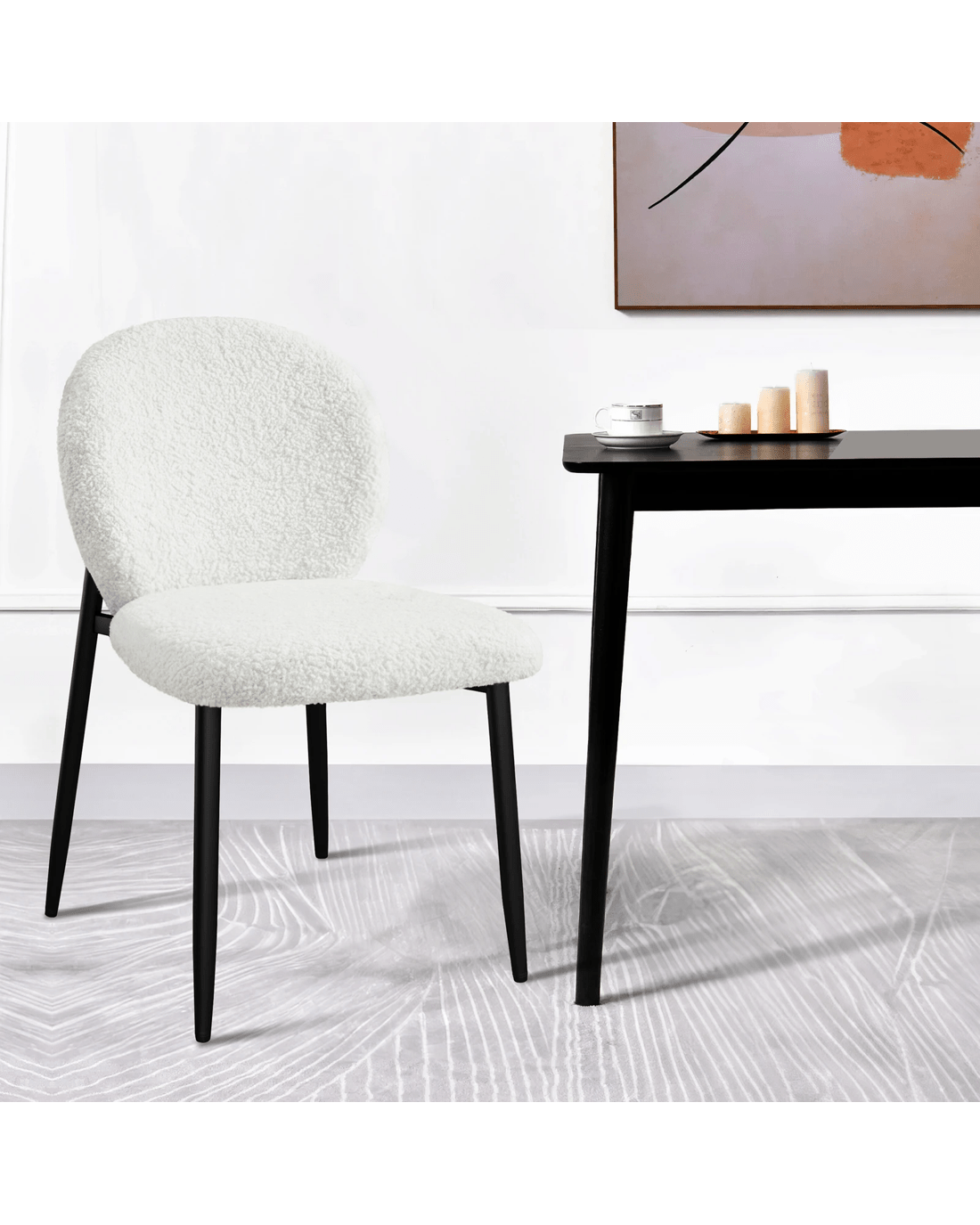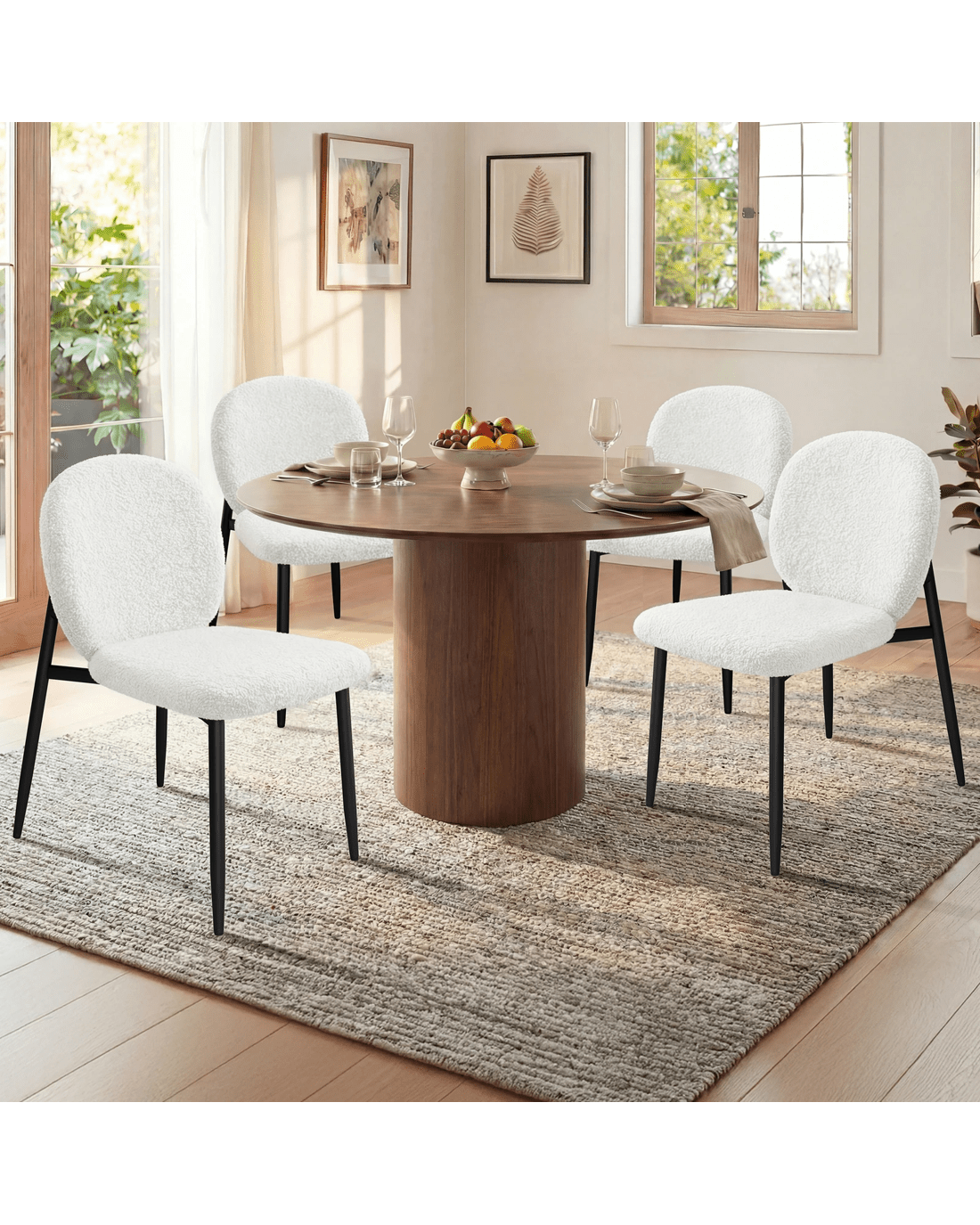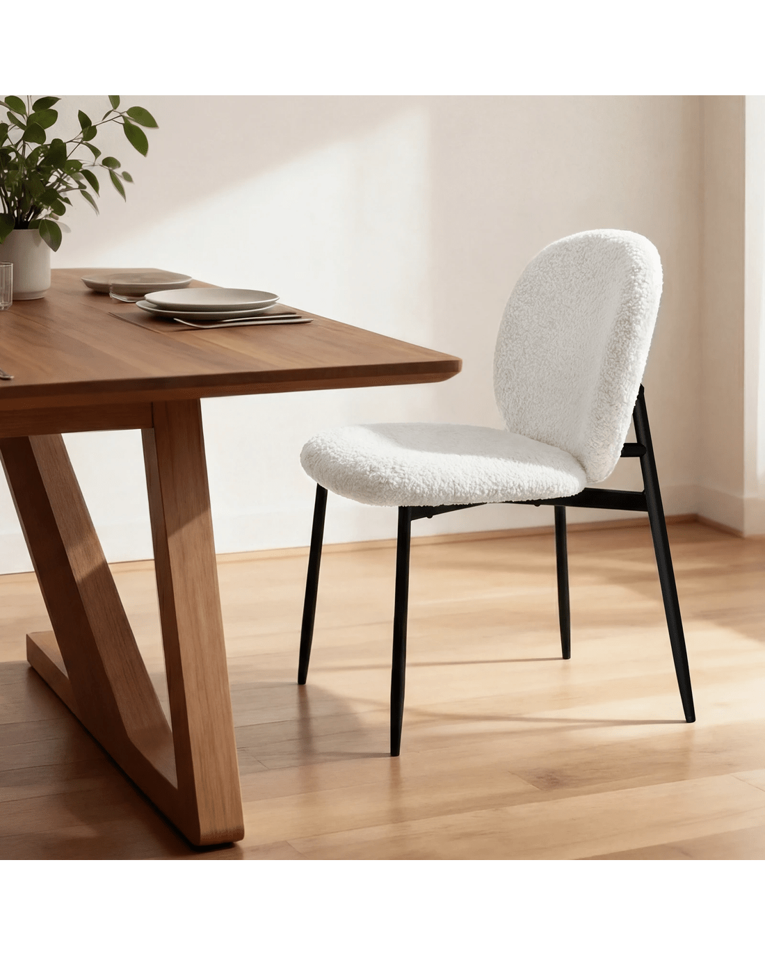 Ultimate comfort - Upholstered in premium sherpa fabric, the seat and backrest are generously padded with high-density foam, providing exceptional support and comfort. Combined with its ergonomic design, our chair offers a delightful seating experience so that you and your guests can enjoy long, leisurely meals without discomfort.