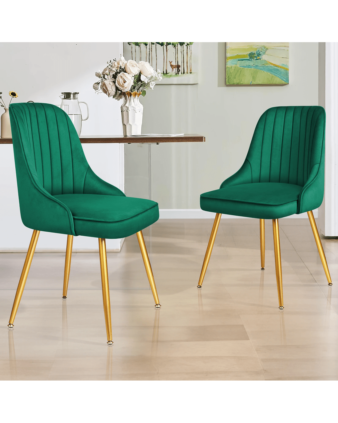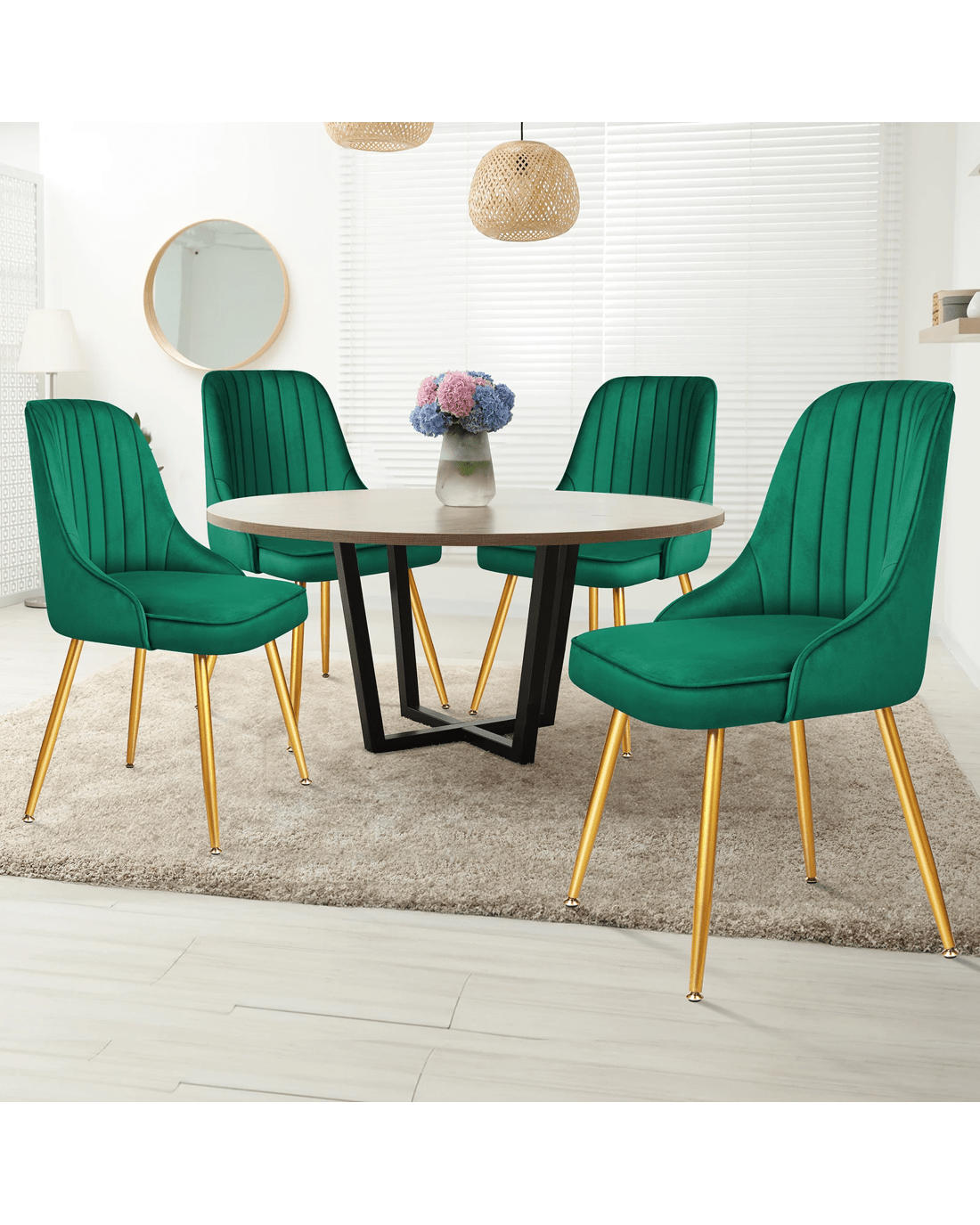 Sold by Aussie Union GroupAlfordson 4x Dining Chairs Kitchen Accent Lounge Padded Tufted Seat Velvet - Green