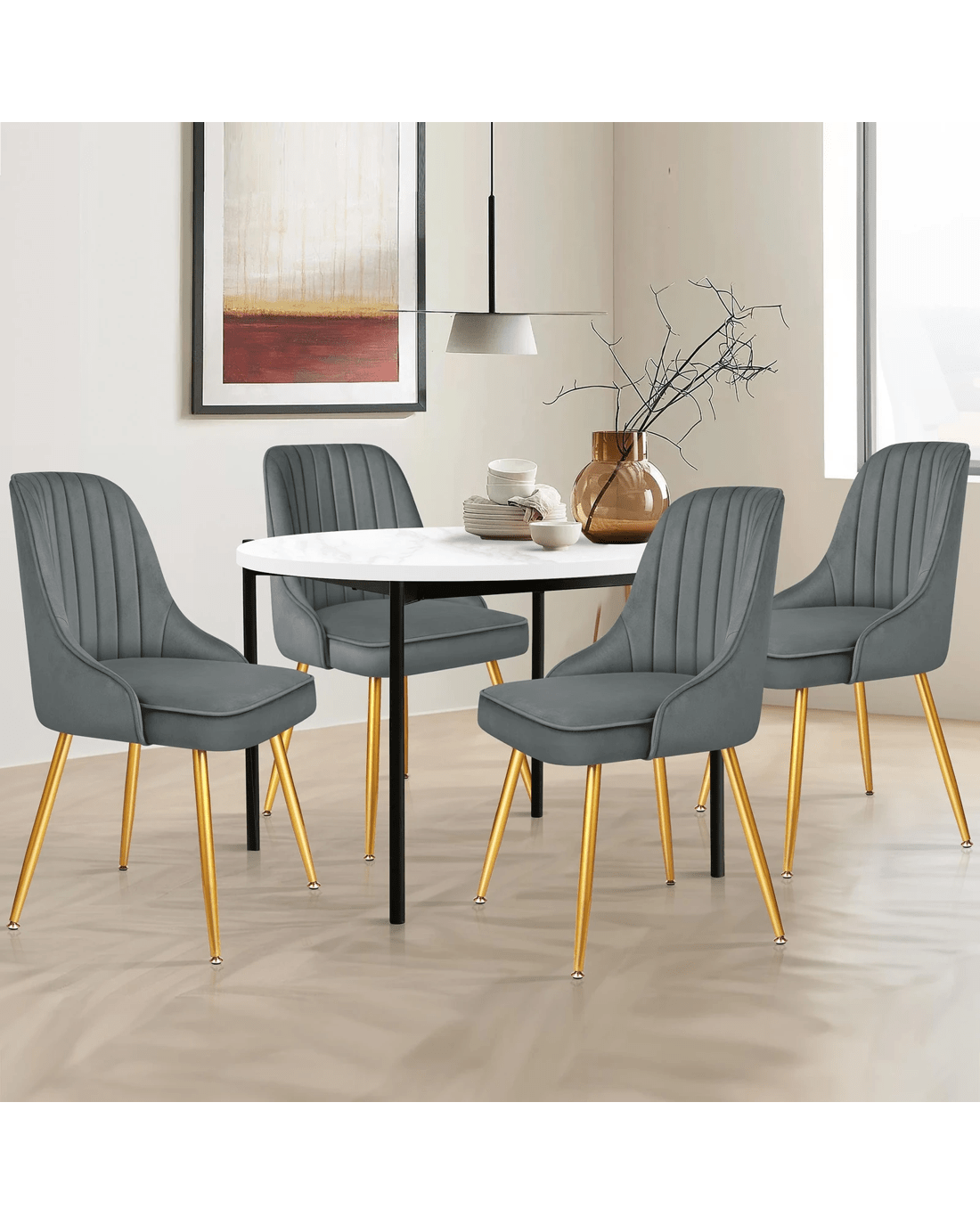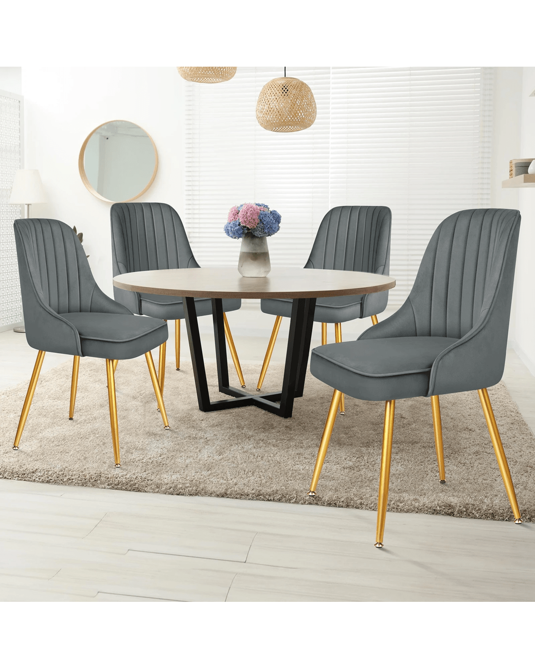 Sold by Aussie Union GroupAlfordson 4x Dining Chairs Kitchen Accent Lounge Padded Tufted Seat Velvet - Grey