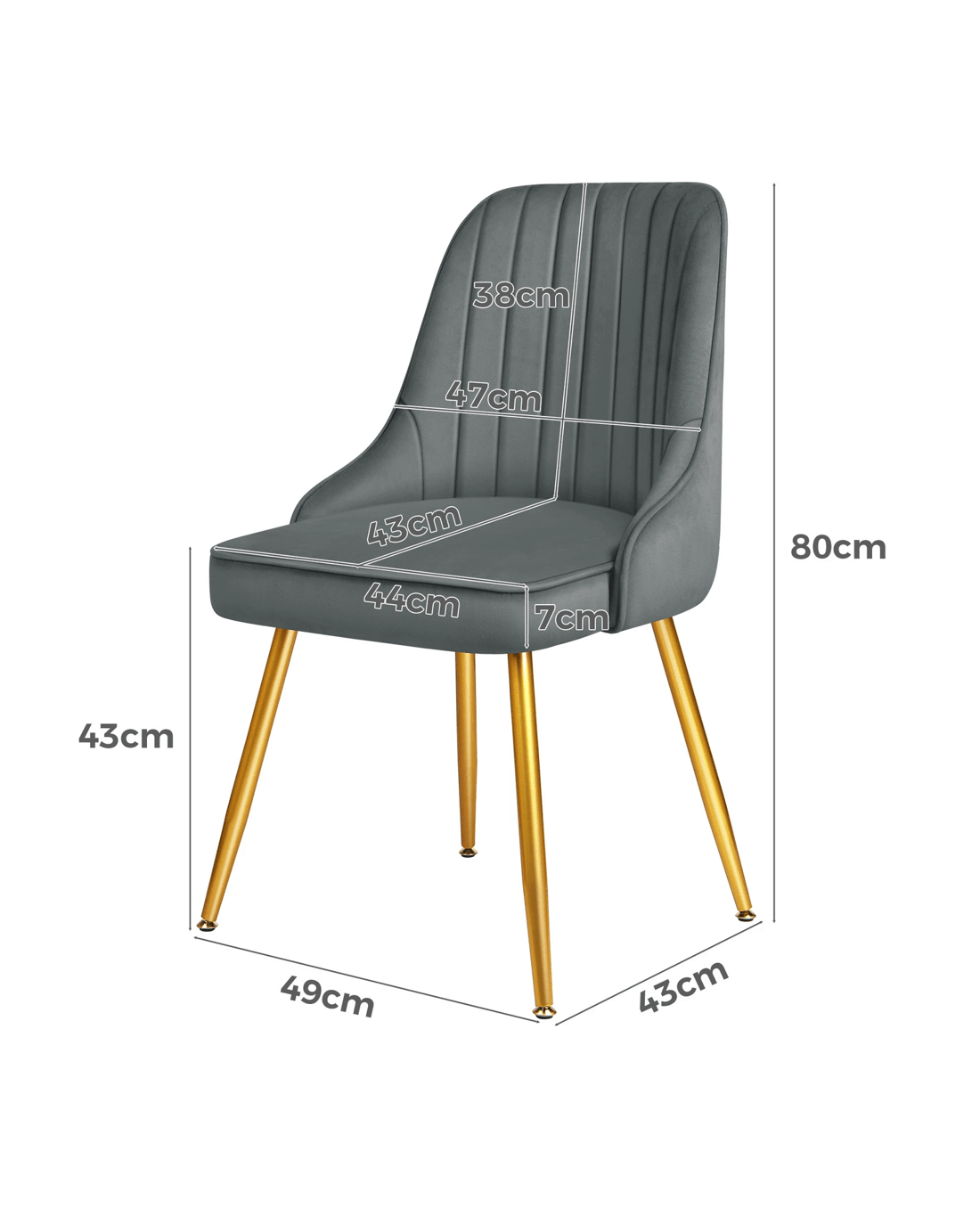 Designed with a blend of comfort and elegance, this accent chair invites you to dine in relaxation. Upholstered in premium velvet fabric, the seat and backrest are padded with high-resilience foam. Combining its curved backrest, the kitchen chair offers a delightful seating experience.