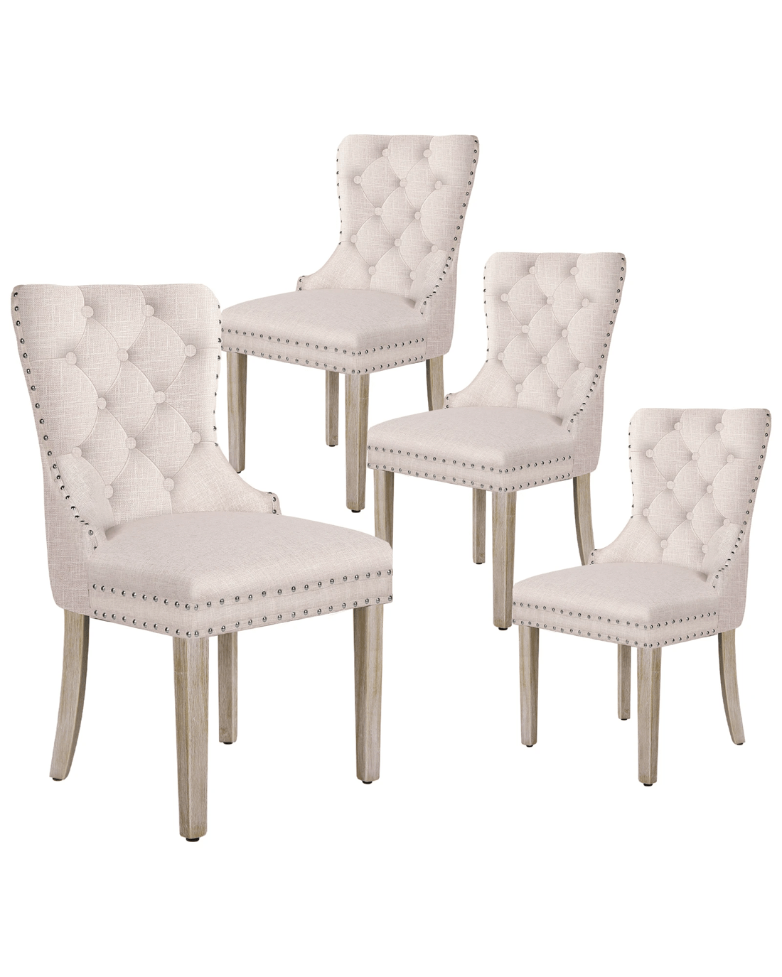 Sold by Aussie Union GroupAlfordson 4x Dining Chairs Kitchen Lounge Padded Diamond Tufted Fabric - Beige