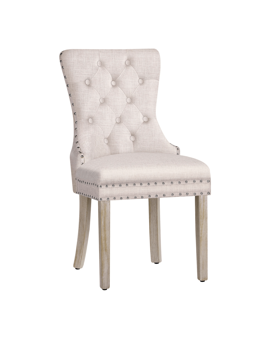 Designed with a blend of comfort and elegance, this accent chair invites you to dine in relaxation. Upholstered in premium linen fabric, the seat and backrest are padded with high-resilience foam. Combining its curved backrest, the kitchen chair offers a delightful seating experience.