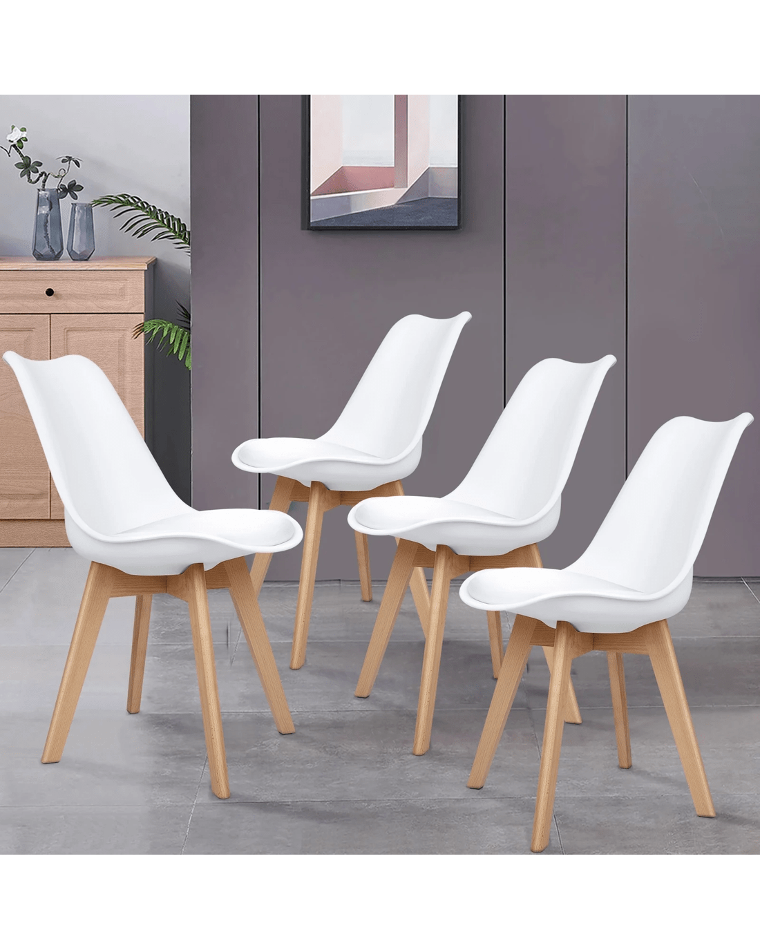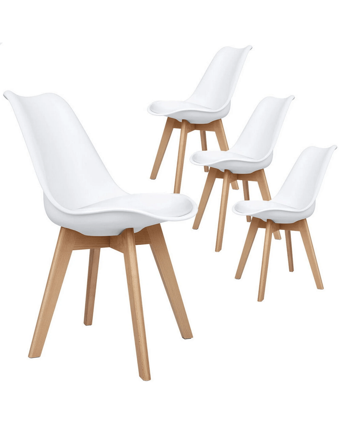 Alfordson 4x Dining Chairs Padding Retro PU Leather Kitchen Lounge Wooden - White