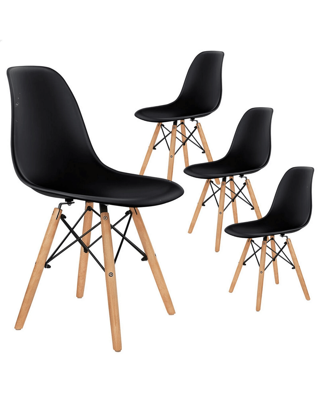Sold by Aussie Union GroupAlfordson 4x Dining Chairs Retro Steel Kitchen Lounge Cafe Solid Wood - Black