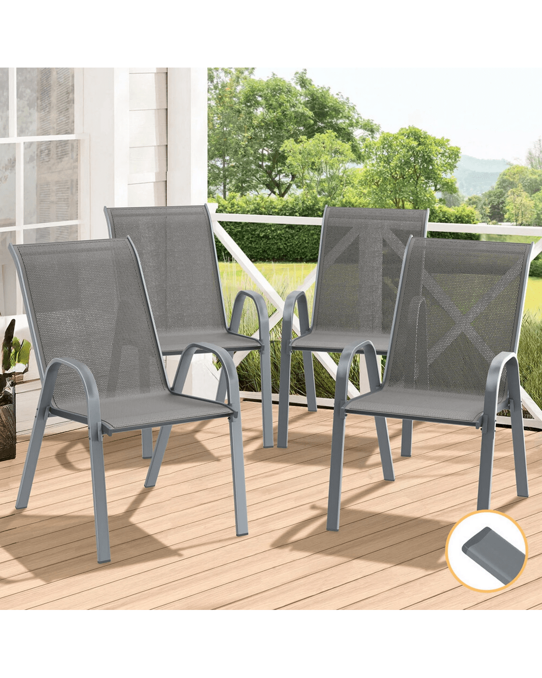 Who wants to host a party indoor whilst the sky is blue outside, or have friends over for coffee in the kitchen whilst the sun shines? Spending time outside in the fresh air not only reduces stress, but also improves our mood and sharpens our focus. With our ALFORDSON 4x Mesh Outdoor Chairs, it will surely bring comfort and relaxing time to you and your family.