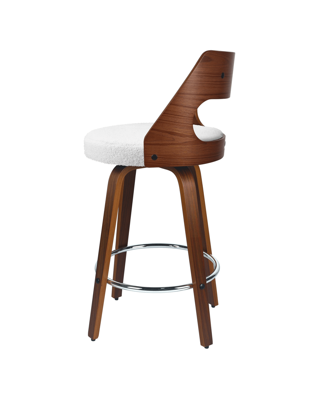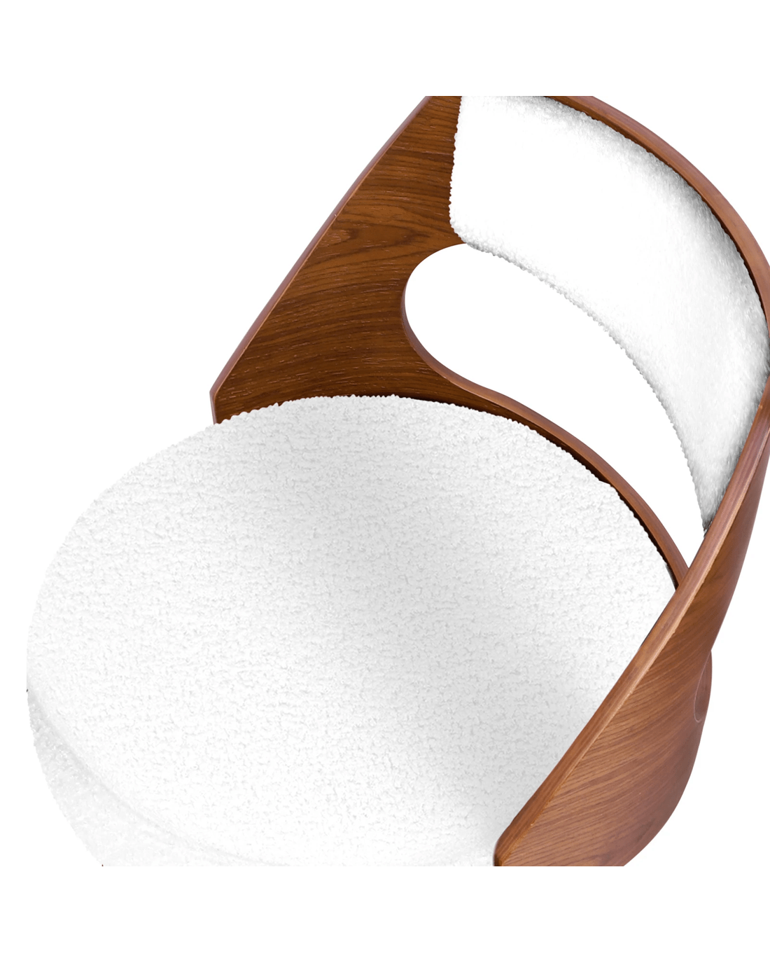 With an eclectic mix of wood, metal and boucle, this bar stool is designed to match any furniture taste.