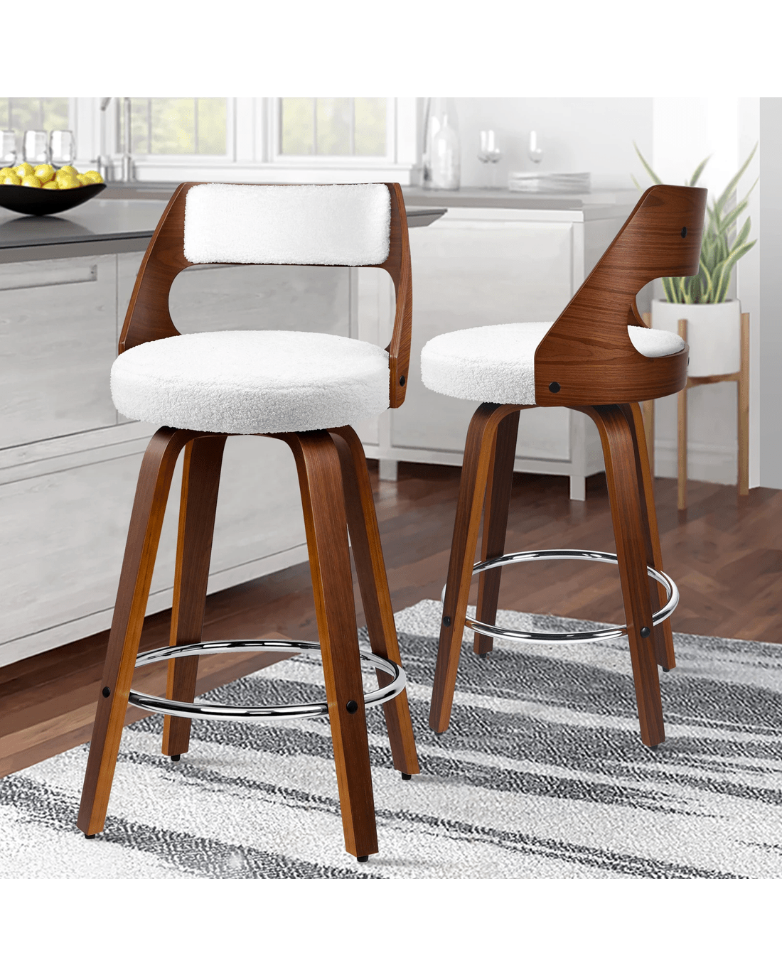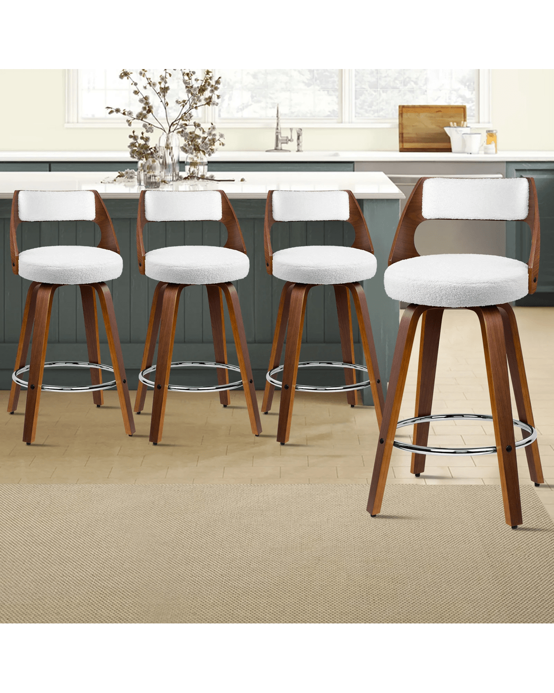 Sold by Aussie Union GroupAlfordson 4x Swivel Bar Stools 65cm Kitchen Wooden Dining Chair Boucle - White