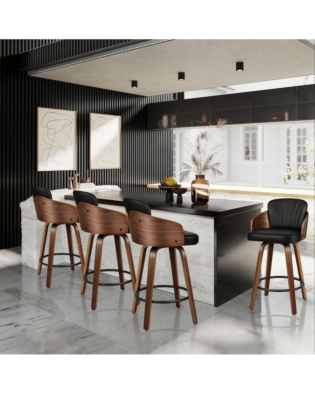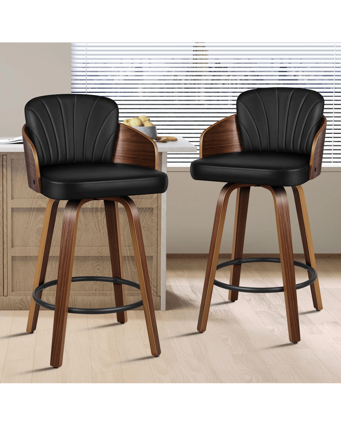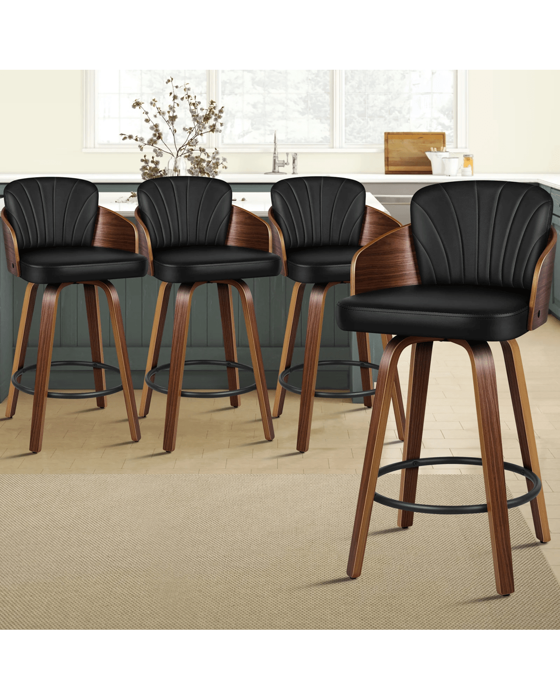Sold by Aussie Union GroupAlfordson 4x Swivel Bar Stools Alice Kitchen Wooden Dining Chair - Black