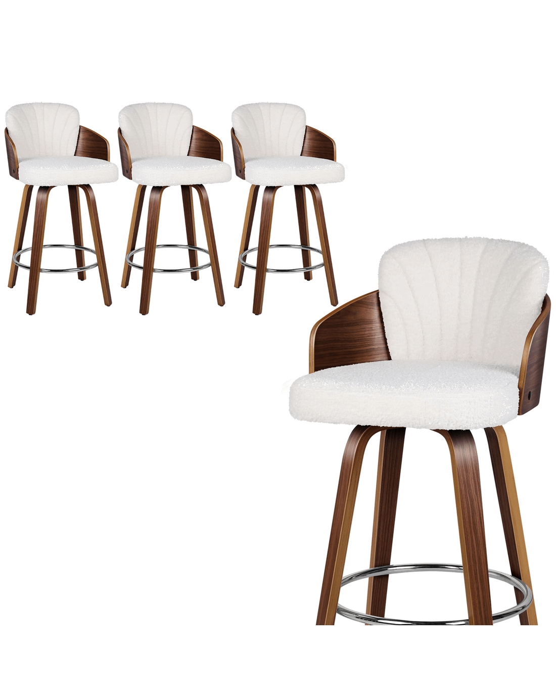 Sold by Aussie Union GroupAlfordson 4x Swivel Bar Stools Alice Kitchen Wooden Dining Chair Boucle - White