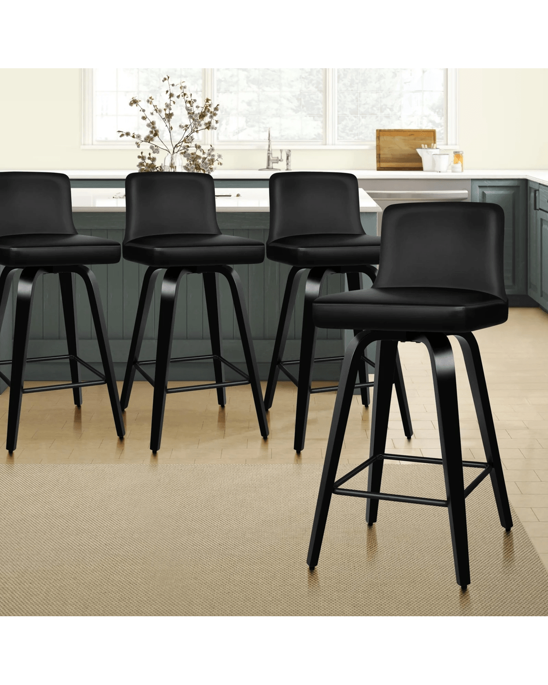 Sold by Aussie Union GroupAlfordson 4x Swivel Bar Stools Bailey Kitchen Wooden Dining Chair - All Black