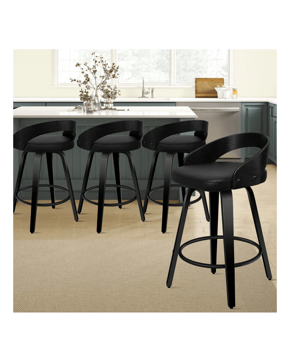 Sold by Aussie Union GroupAlfordson 4x Swivel Bar Stools Caden Kitchen Wooden Dining Chair - Black
