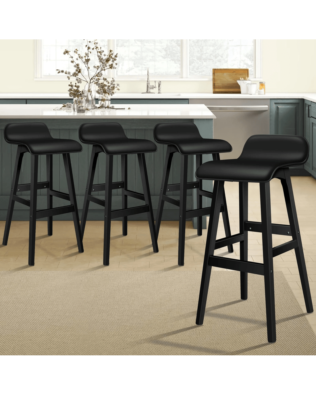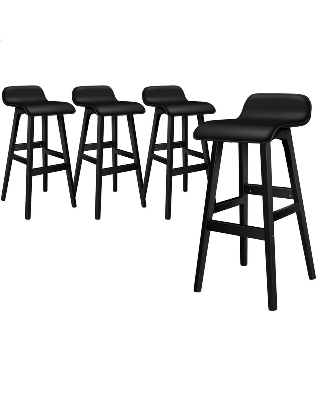 Sold by Aussie Union GroupAlfordson 4x Wooden Bar Stools Kitchen Dining Chair Leather Samuel - Black