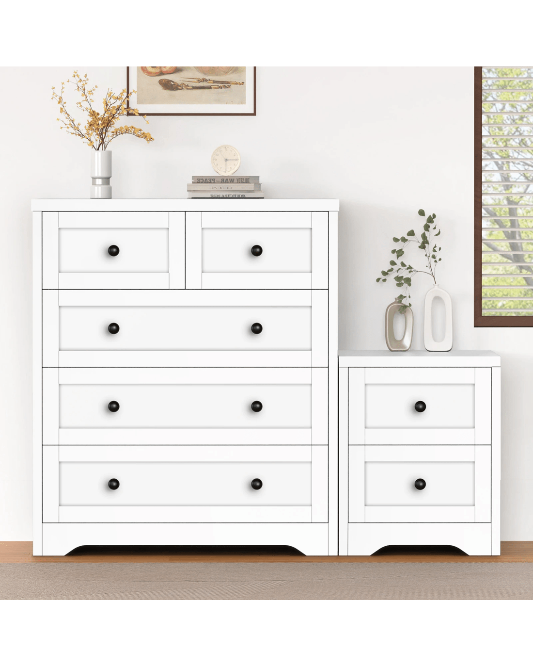 Maximize functionality - Featuring spacious drawers, both chest and drawers and bedside tables provide ample storage to neatly store all your belongings. You can easily separate and organize different items, ensuring everything has its place and stays dust-free. Essentials like a mirror, jewelry box, houseplants, photos of your loved ones can also be put on the top of chest of drawers, while the bedside table serves as functional addition to place necessary items like a lamp, a book, a glass of water, alarm clock, or whatever else you may want to keep close by the bed.