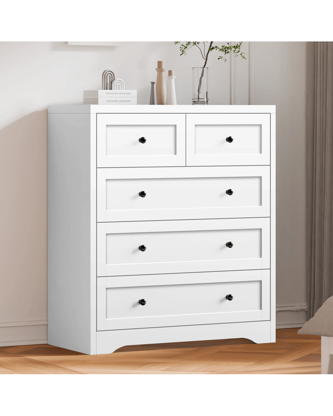 Alfordson 5 Chest of Drawers Hamptons Storage Cabinet Dresser Tallboy - White