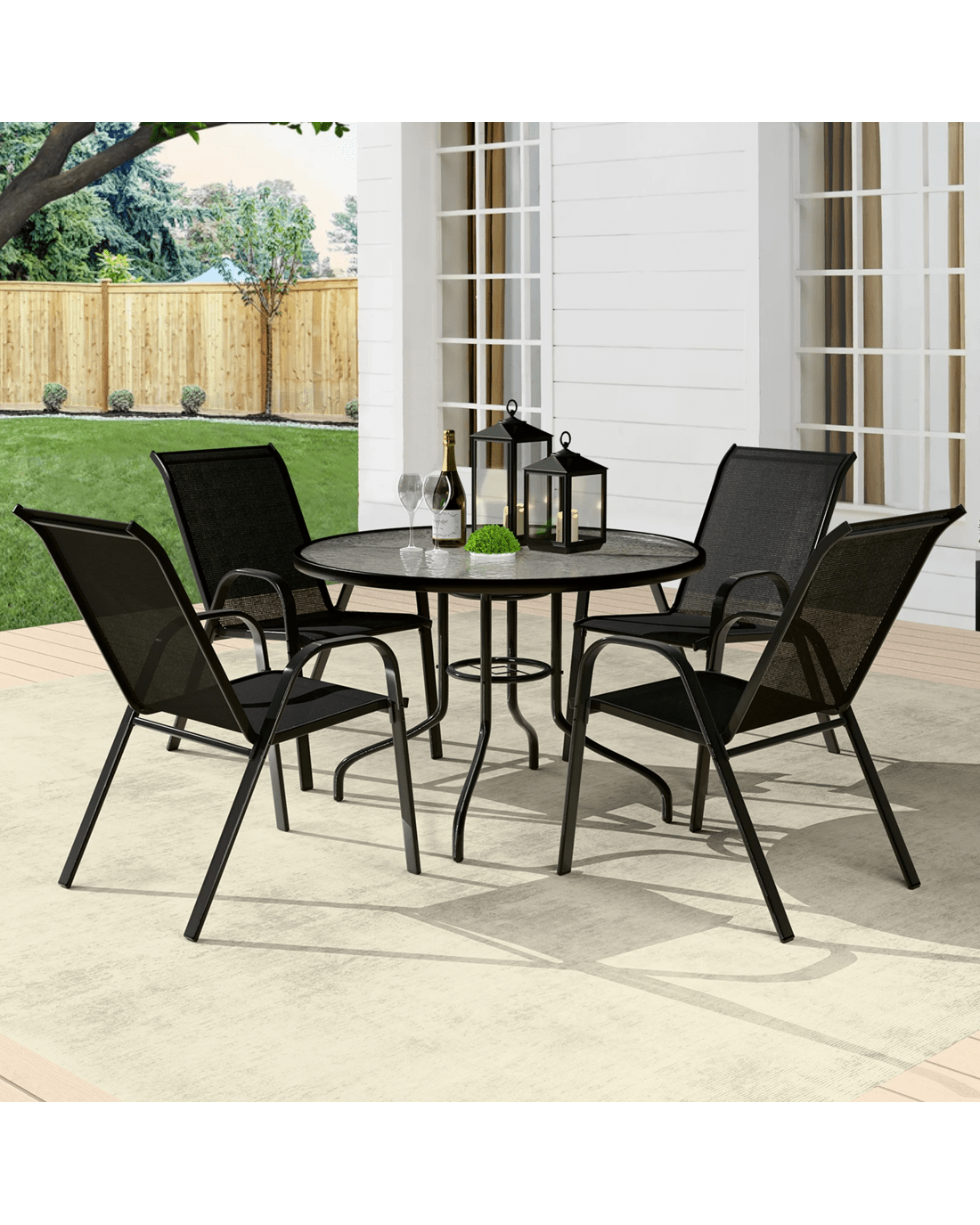 Alfordson 5PCS Outdoor Dining Set Table and Chairs Patio Furniture Round - Black