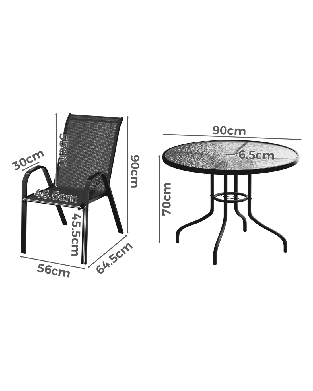 * Chairs dimension: 56 cm x 64.5 cm x 90 cm