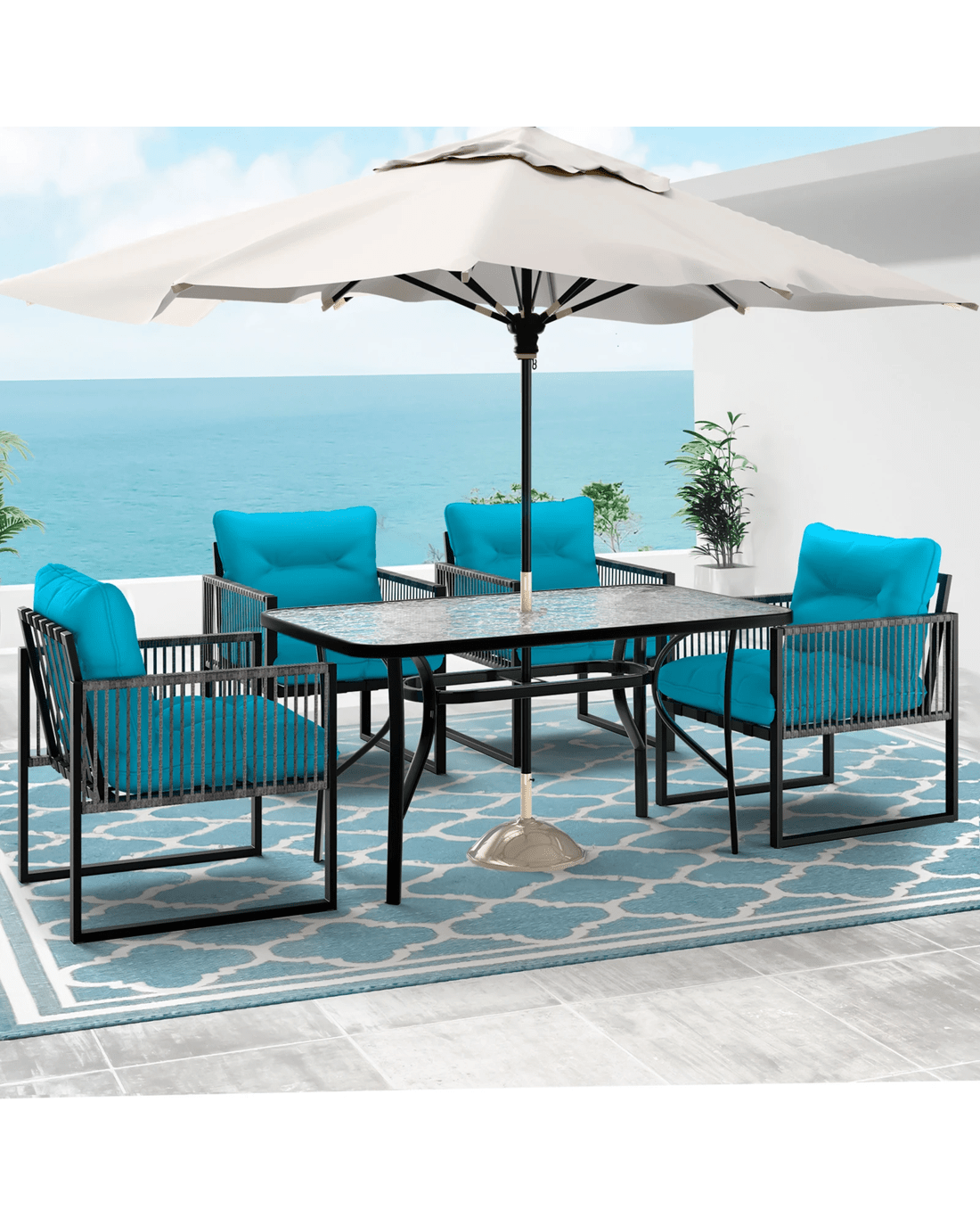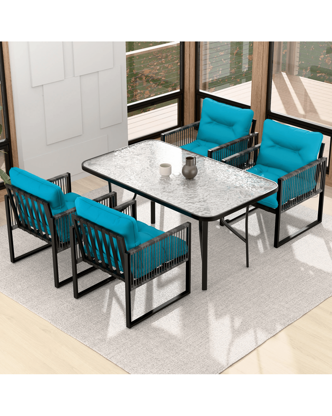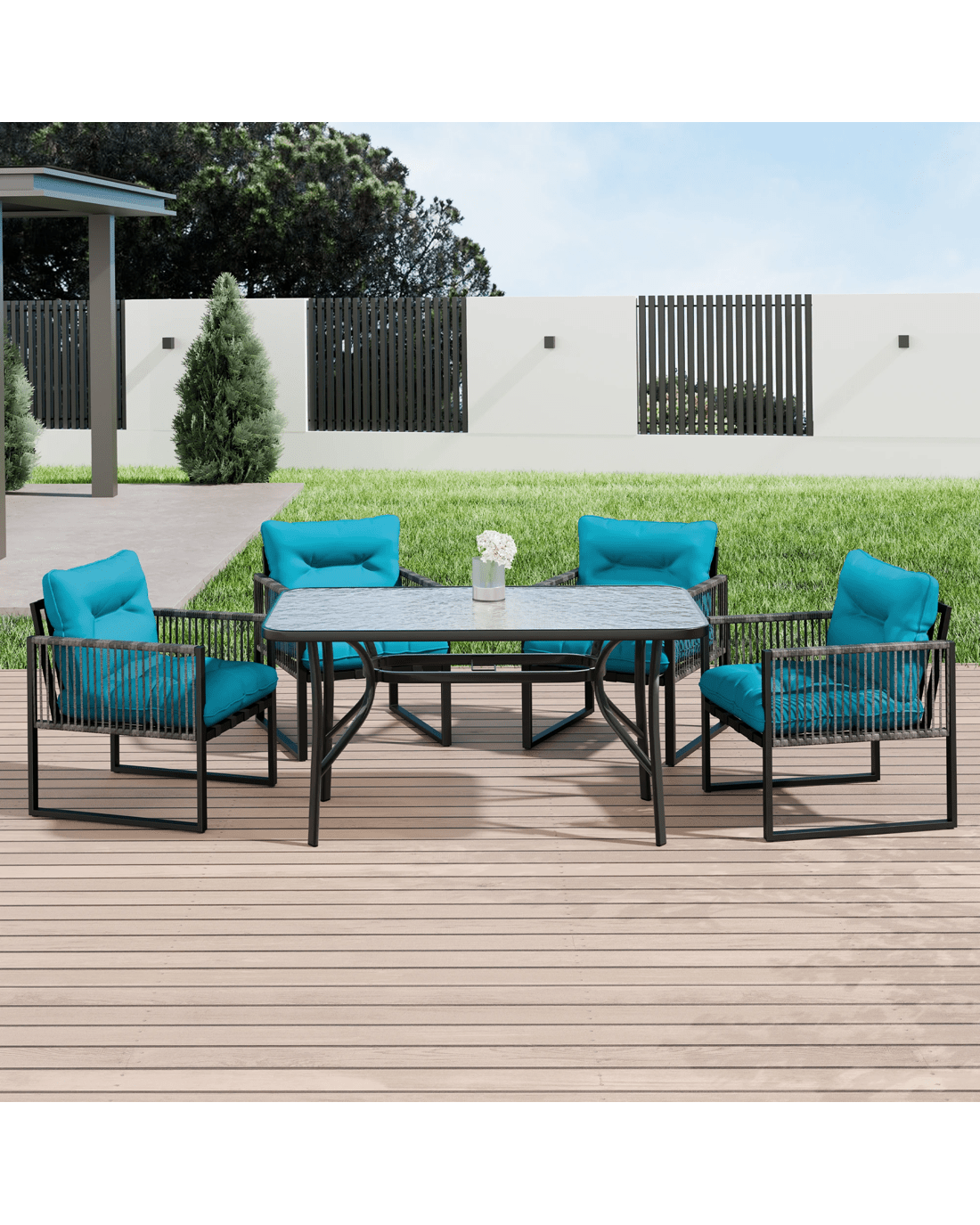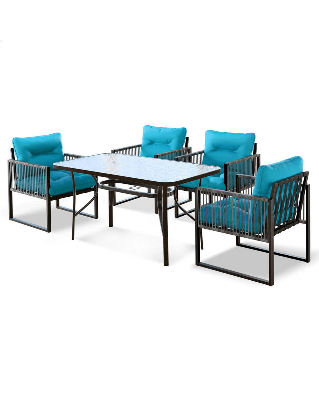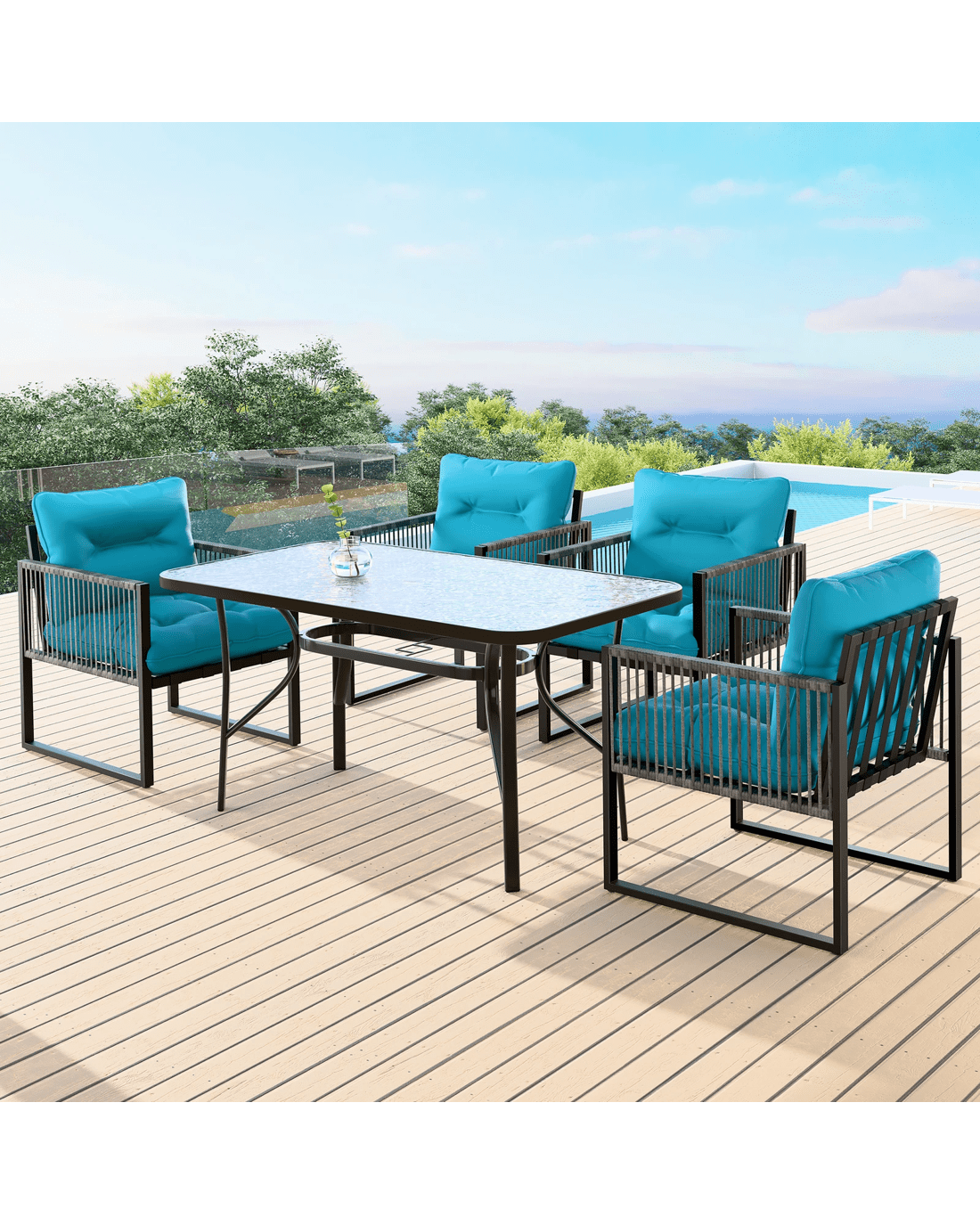 Alfordson 5PCS Outdoor Patio Furniture Dining Set Table Chairs Wicker Lounge - Blue