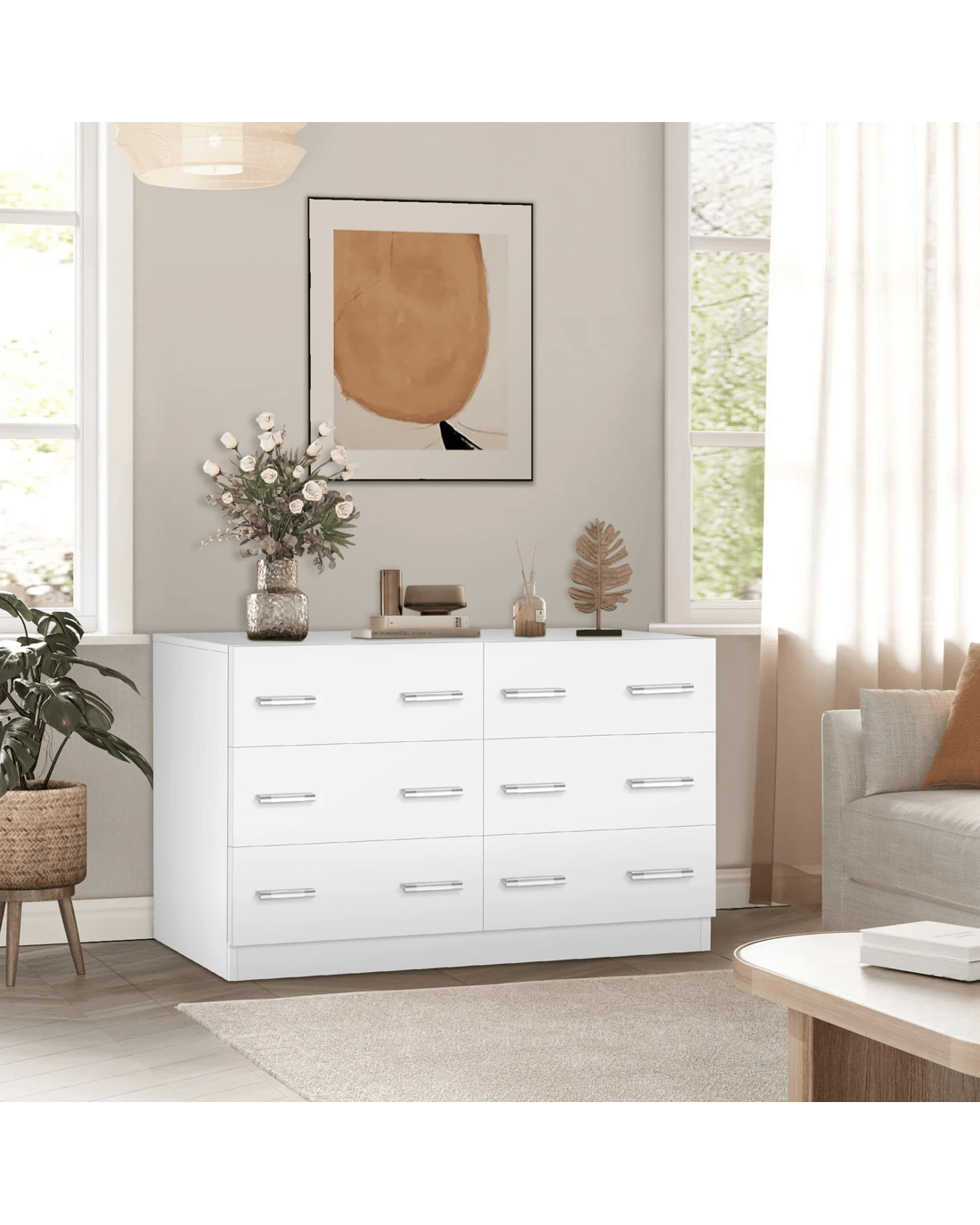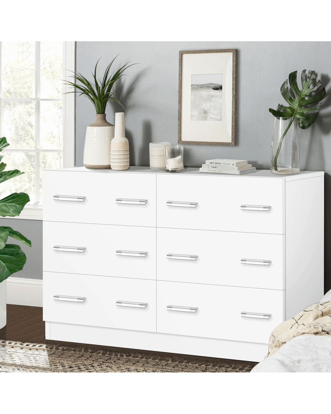 Not only will it look stylish, but it will also give you a maximum amount of space to better organize your surroundings. Featuring 6 spacious drawers, it provides ample storage so that you can designate areas for different items and those items you store away in the drawers won't gather dust. Essentials like a lamp, books, an alarm clock and photos of your loved ones can also be put on the top of dresser.