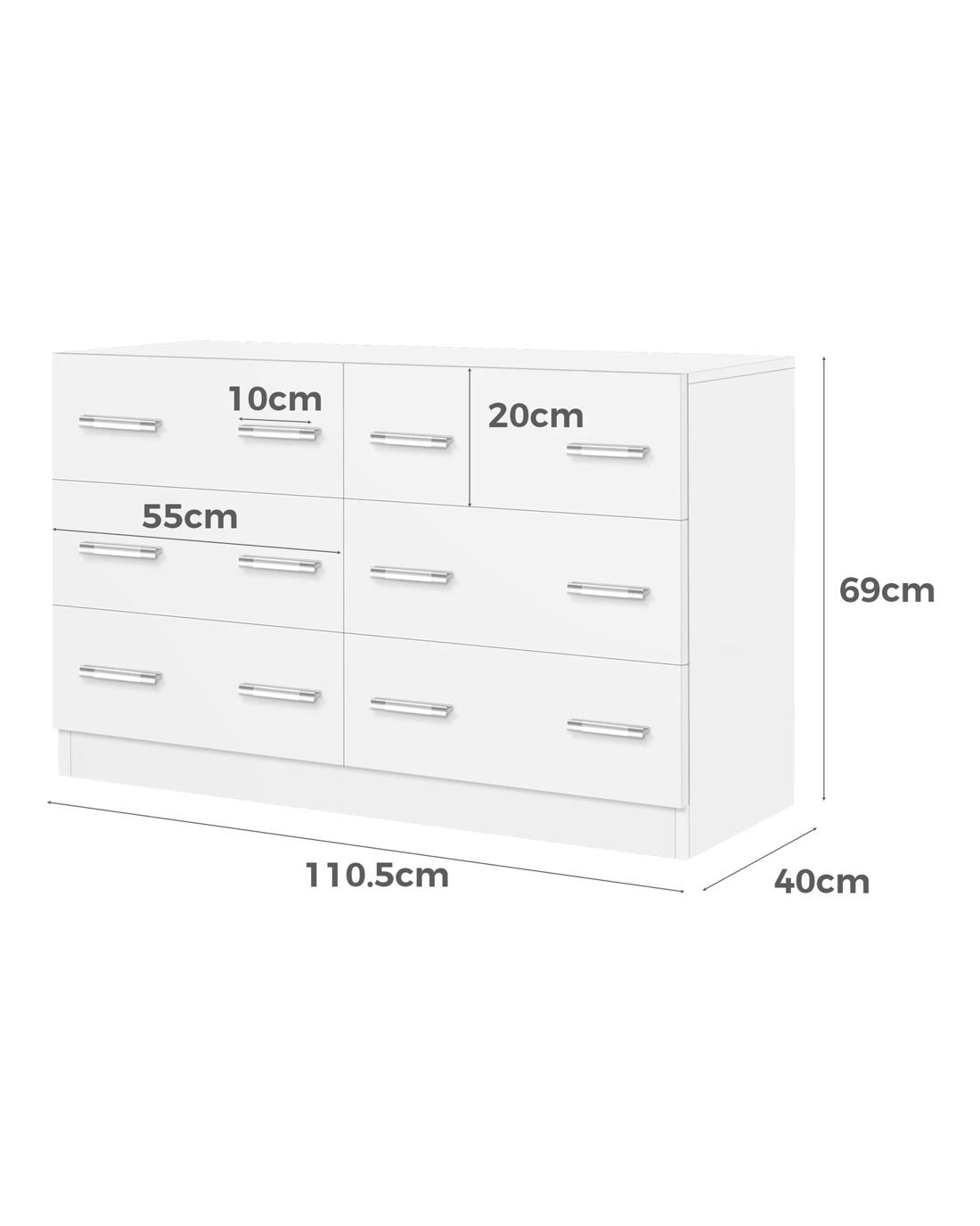 * Six spacious drawers