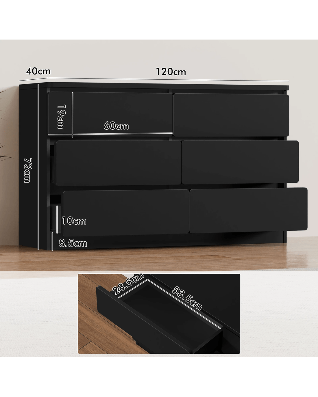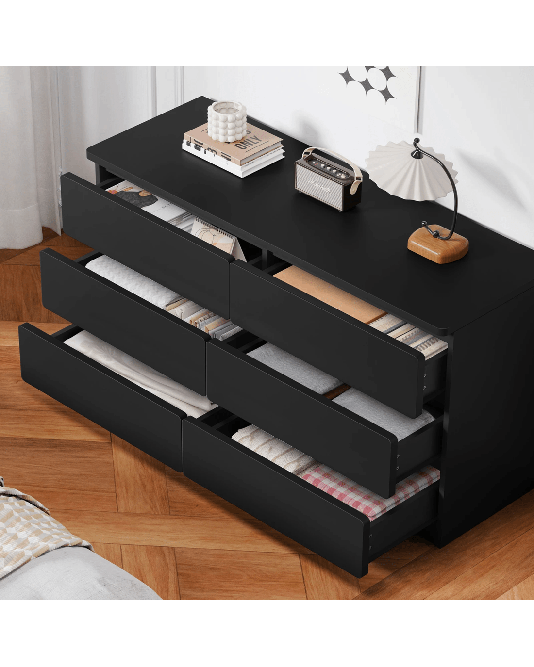 * 6 spacious drawers for clutter-free organization