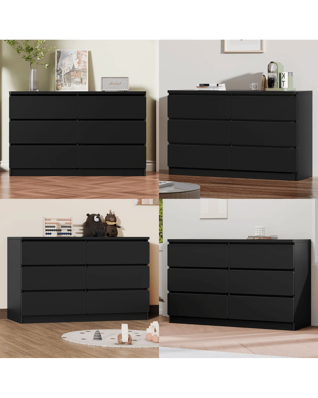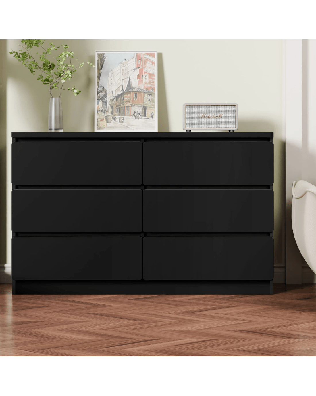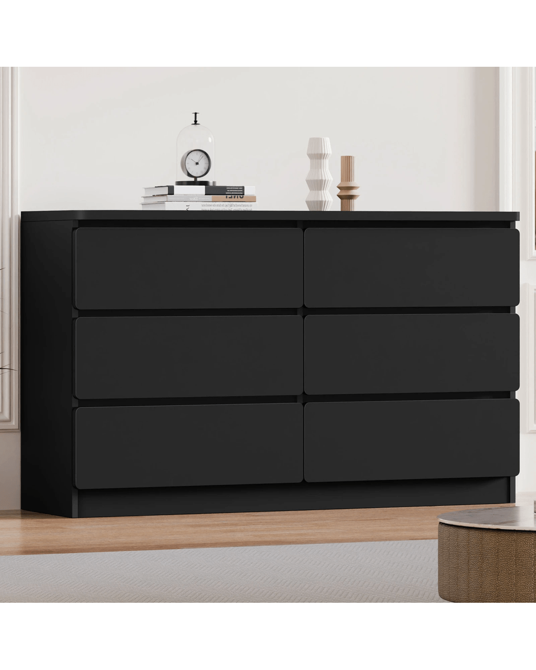 Alfordson 6 Chest of Drawers Minimalist Storage Cabinet Dresser - Black