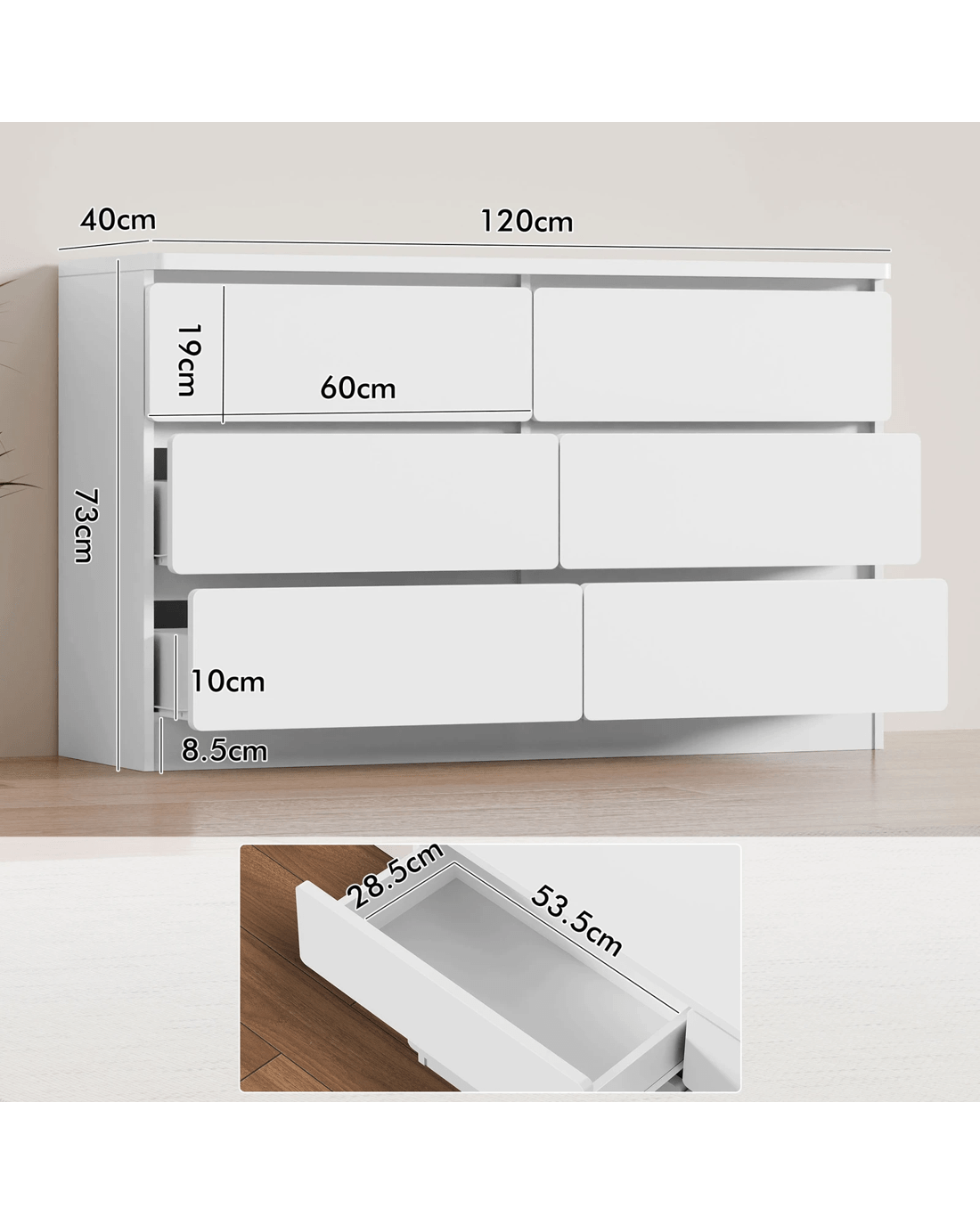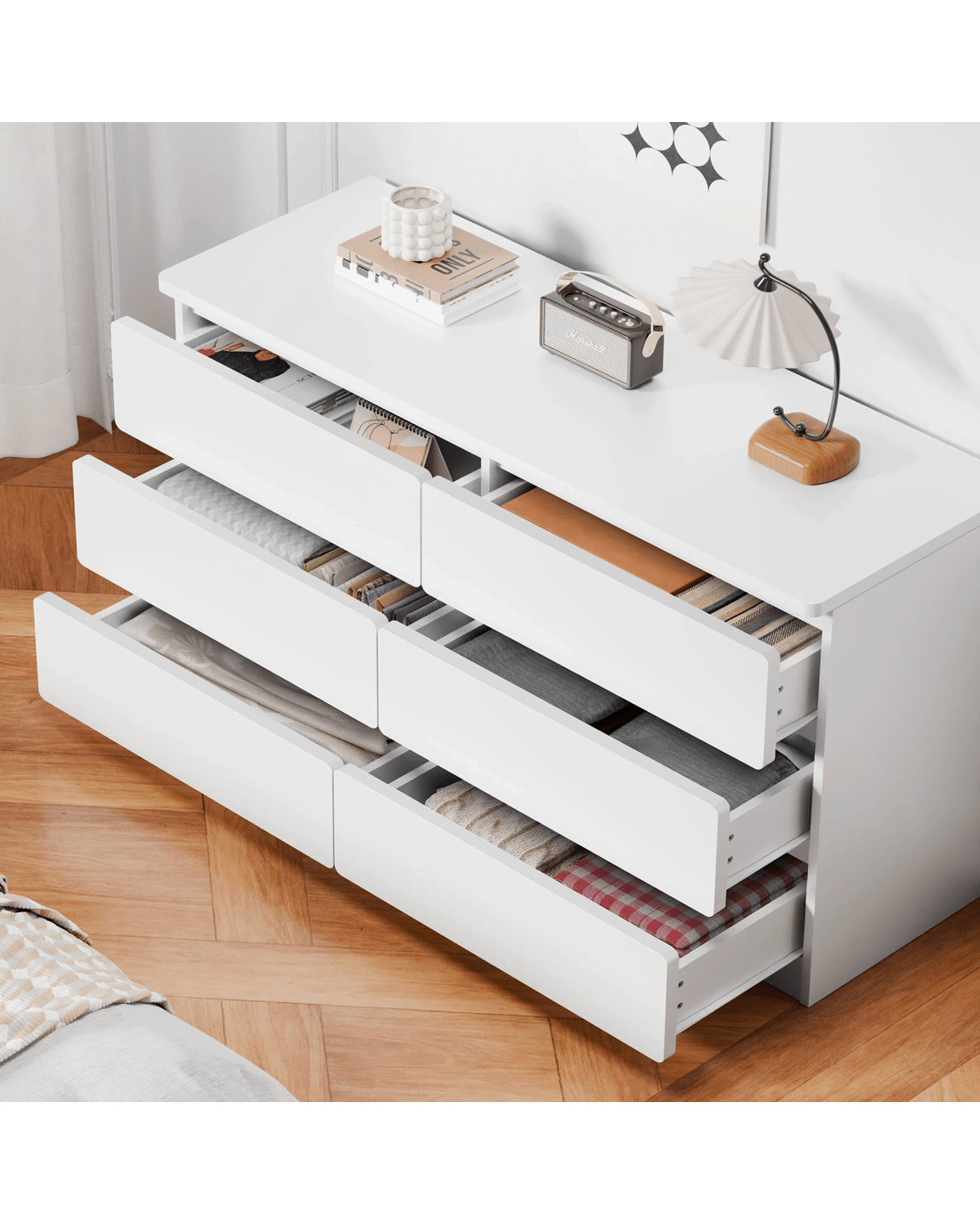 * 6 spacious drawers for clutter-free organization