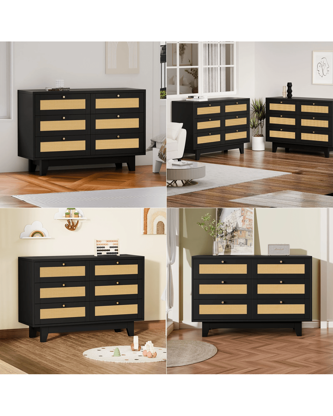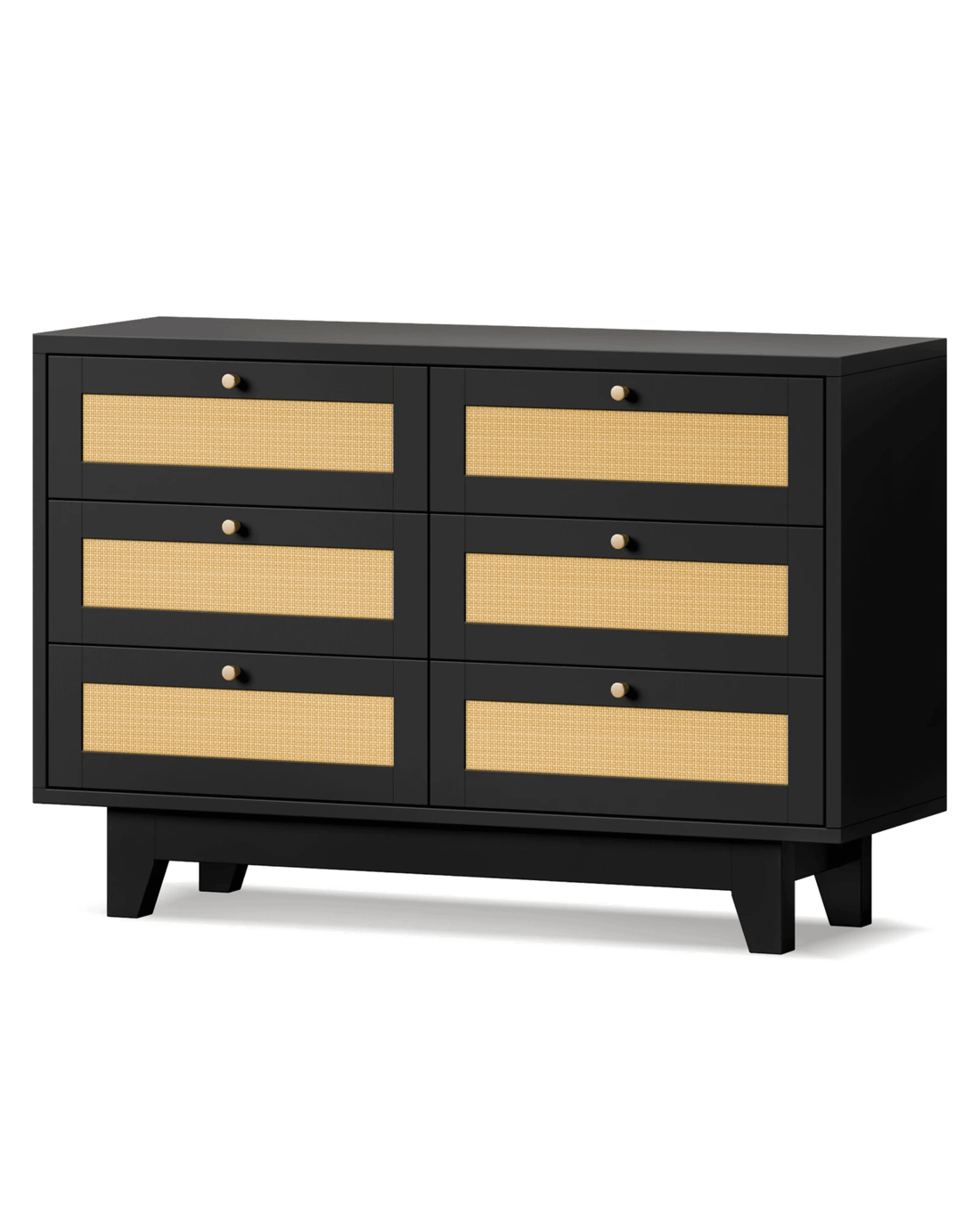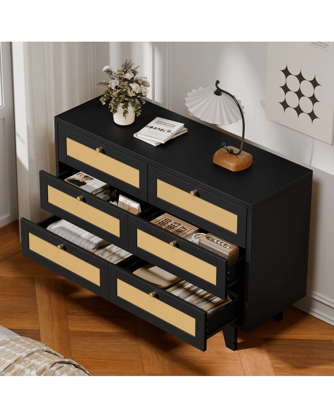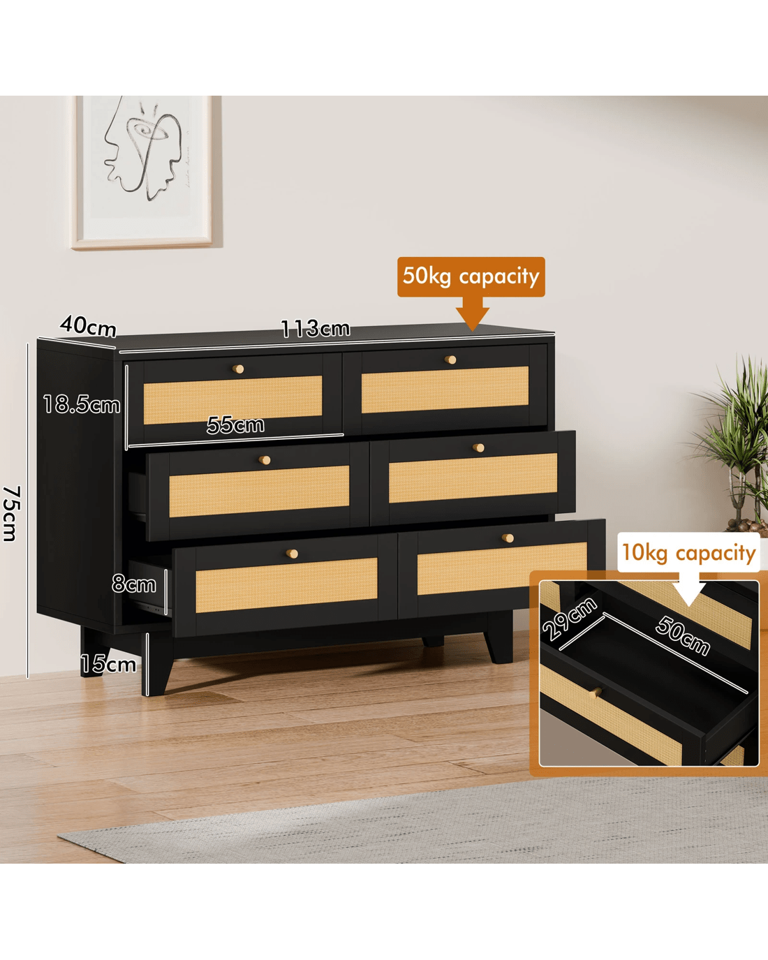Alfordson 6 Chest of Drawers Rattan Storage Cabinet Dresser - Black