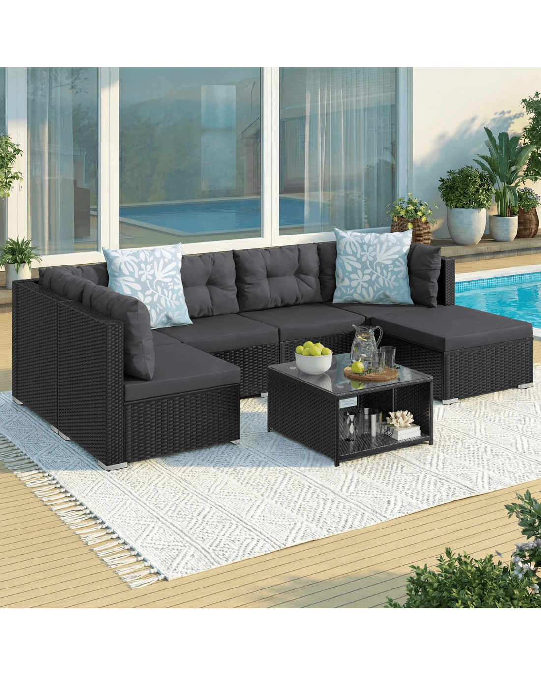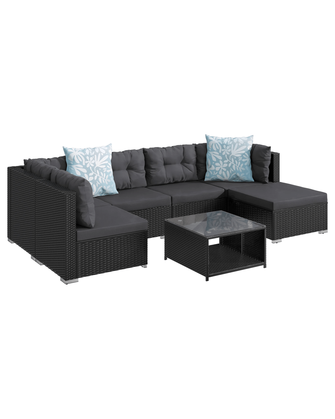 Alfordson 6 Seater Outdoor Lounge Setting 7PCS Sofa Set Furniture Patio - Black