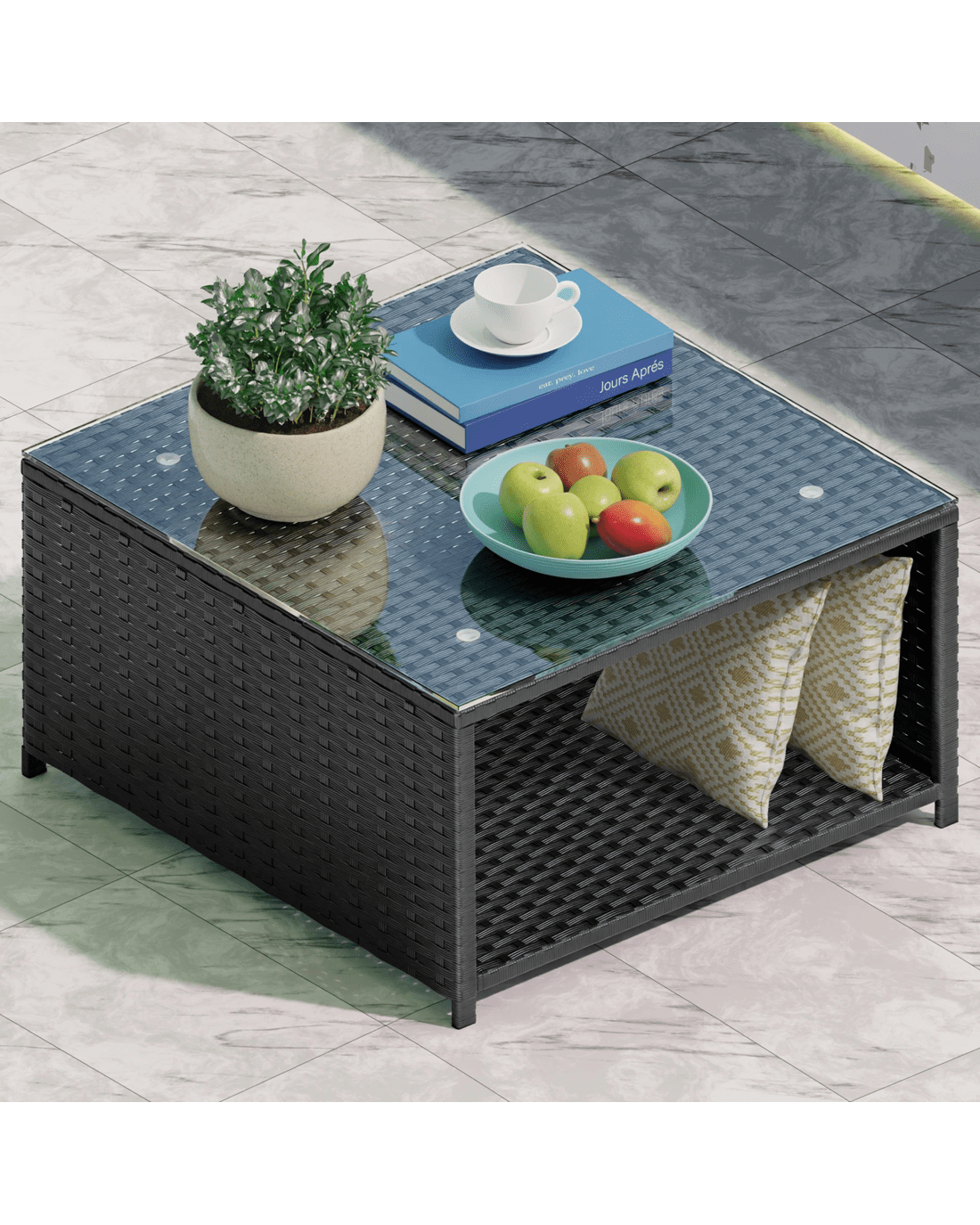Exclusive storage space - Unlike many other products, our coffee table in the set features unique storage space. With the 26.5cm elevated storage space, it can be used to store books, pillows, or other items you may want to keep within reach while relaxing outside.