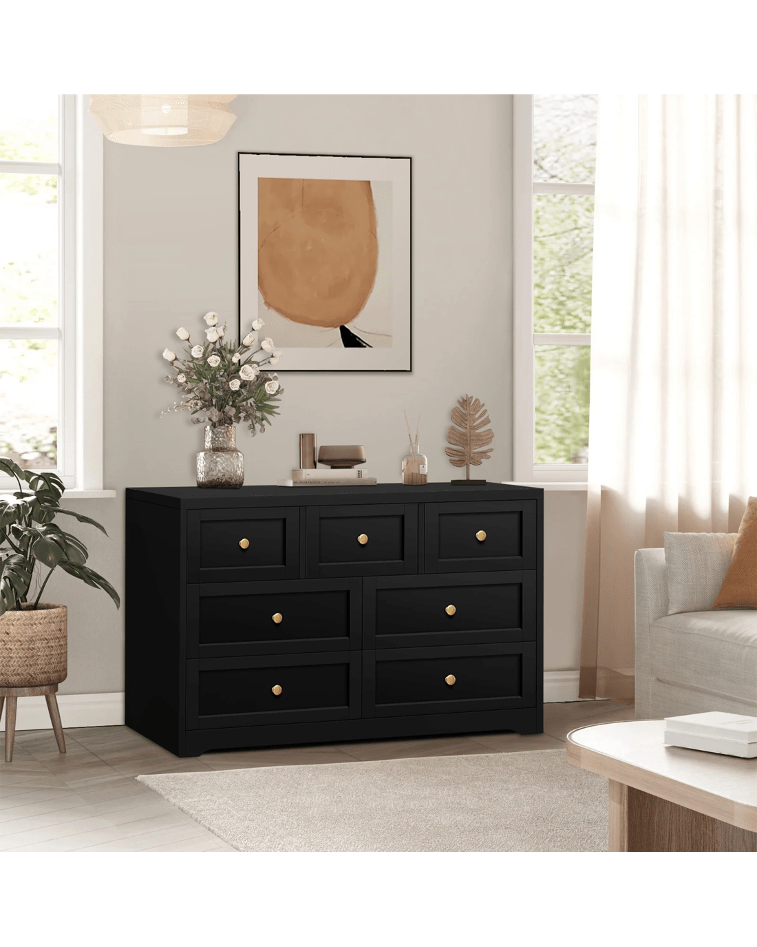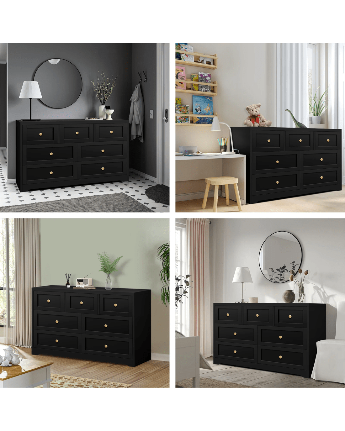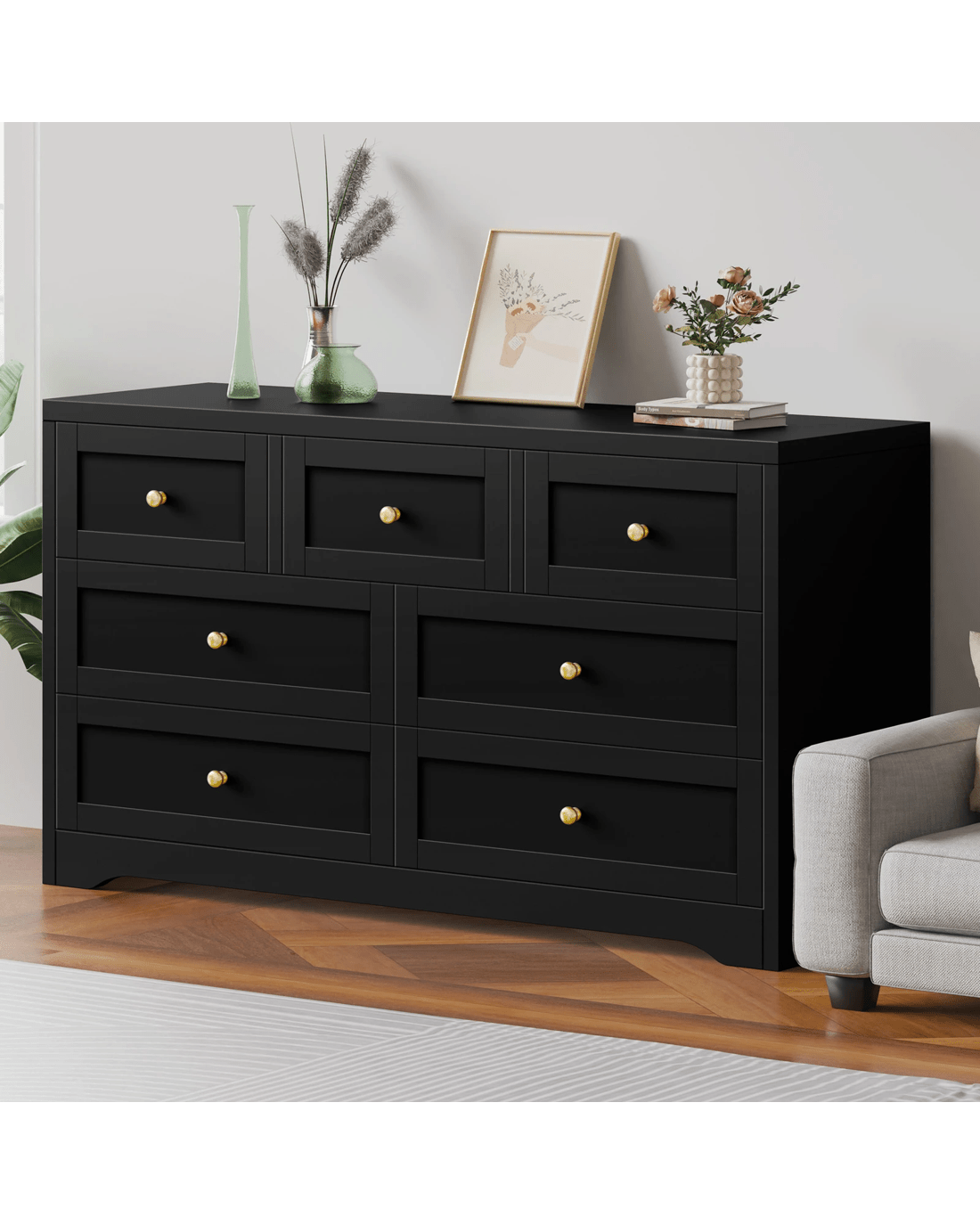 Alfordson 7 Chest of Drawers Hamptons Storage Cabinet Dresser Tallboy - Black