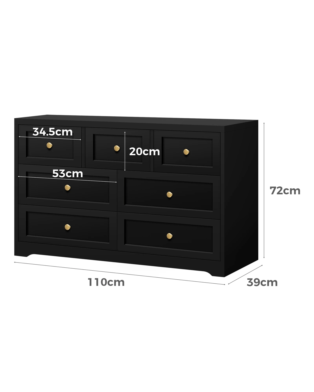 * Three top drawers and four spacious drawers