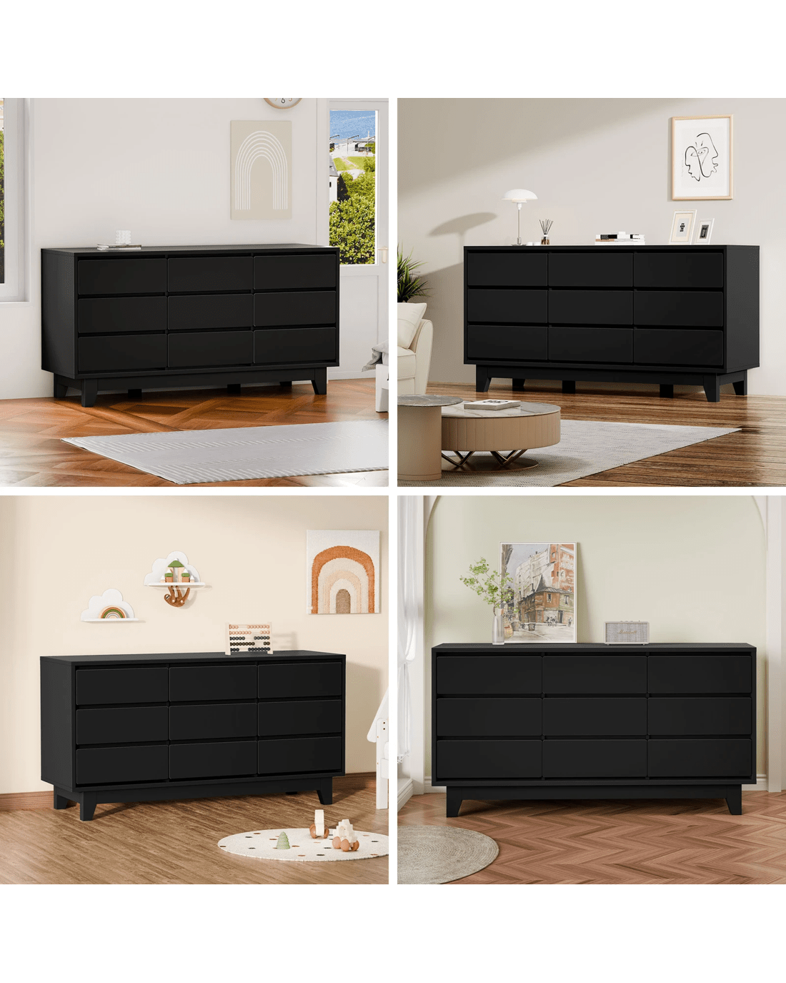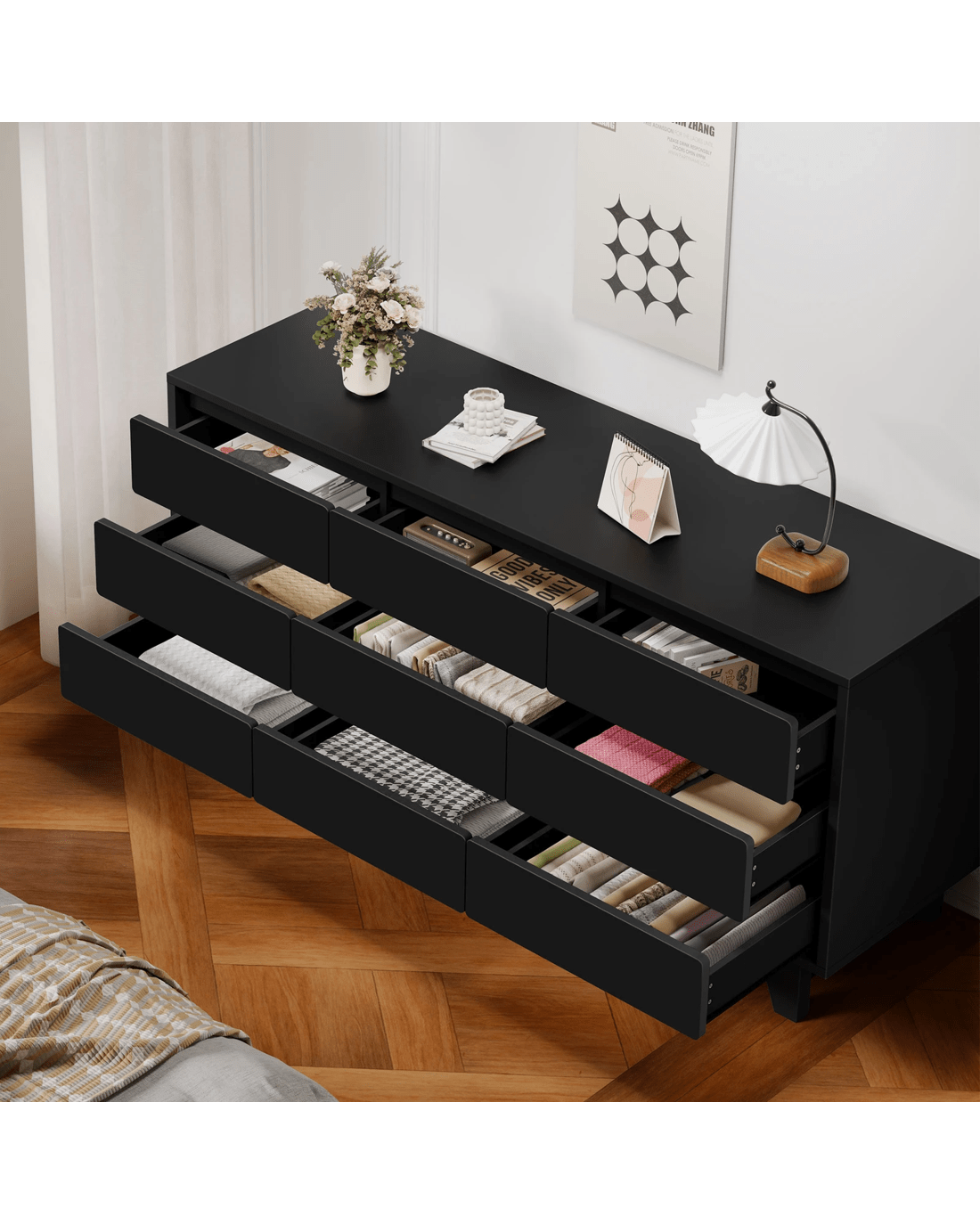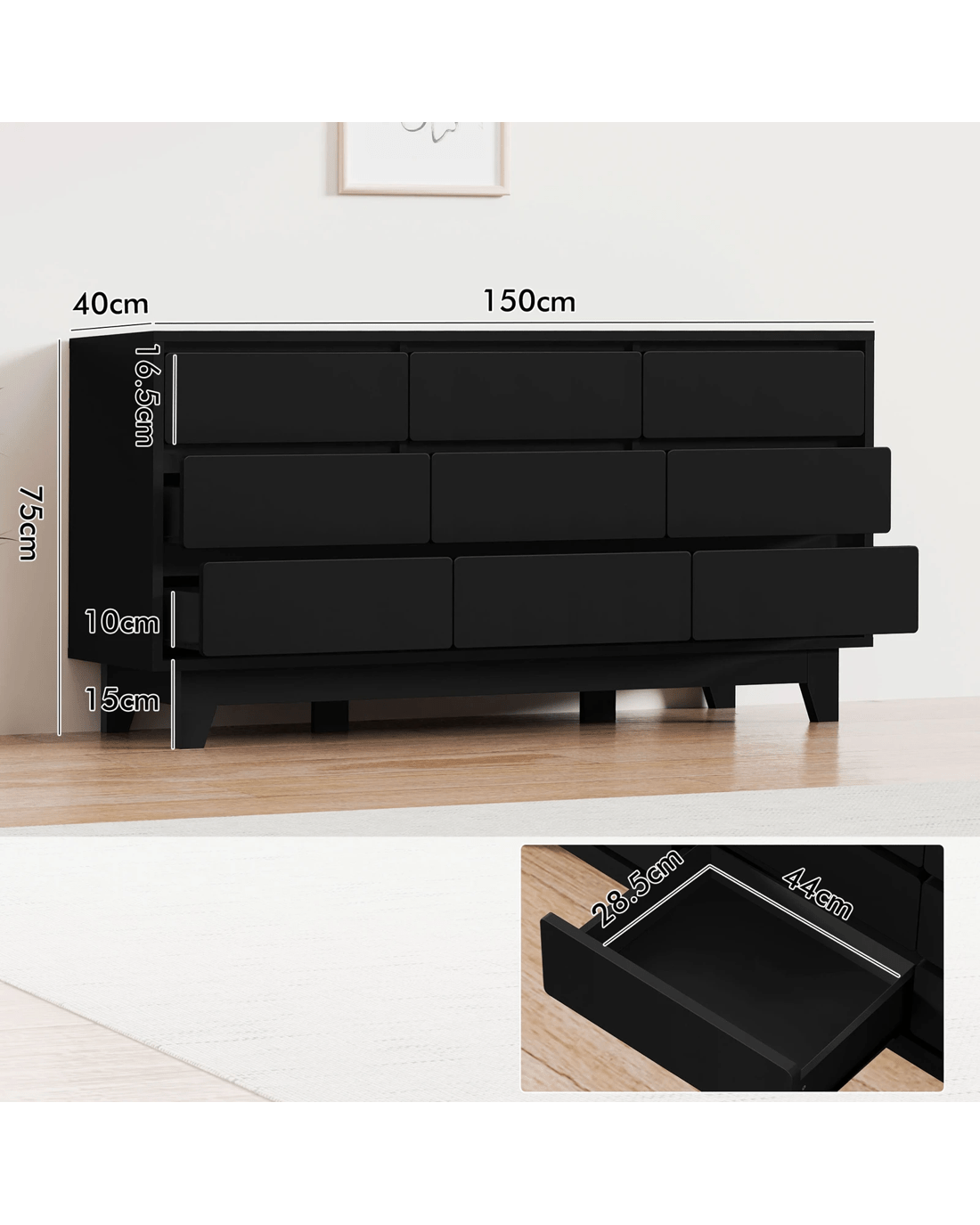 Alfordson 9 Chest of Drawers Minimalist Storage Cabinet Dresser - Black