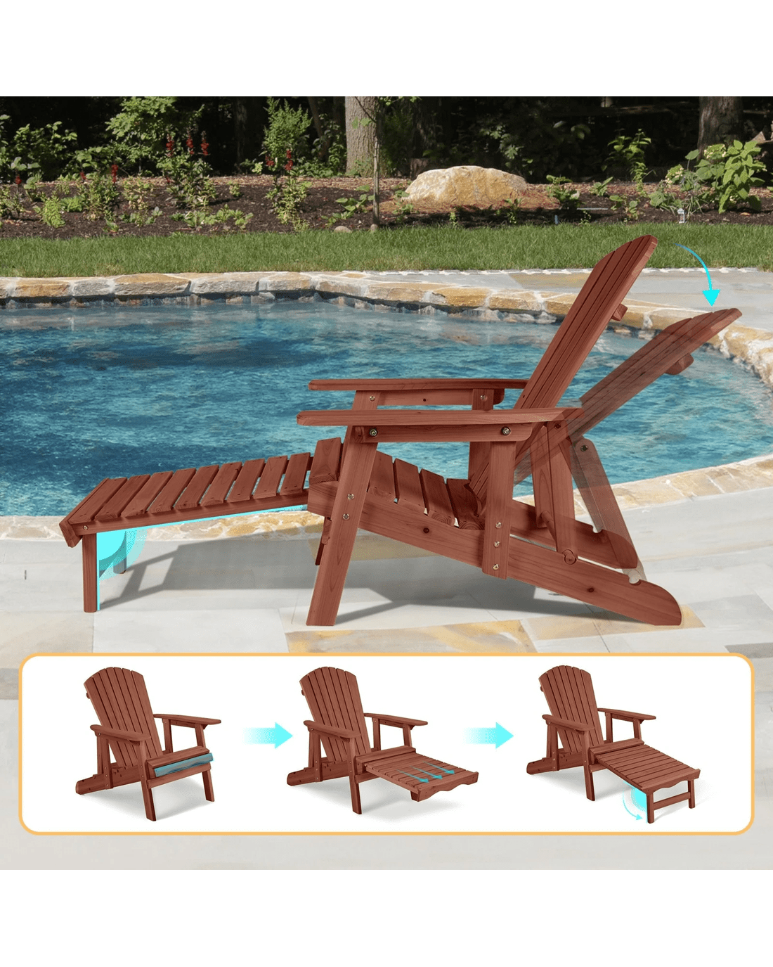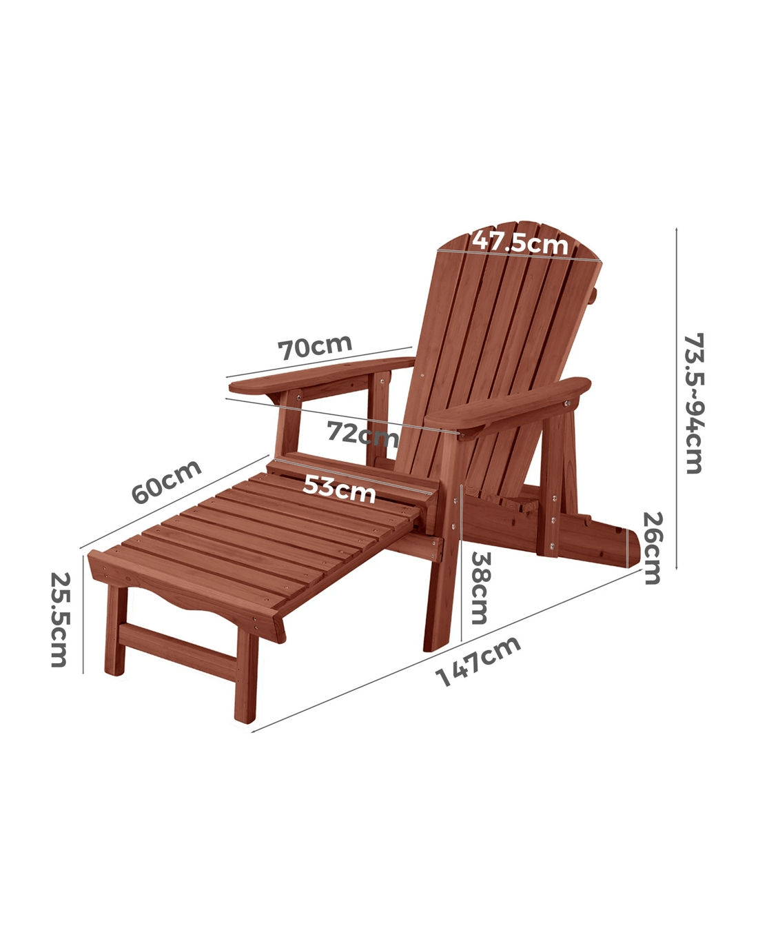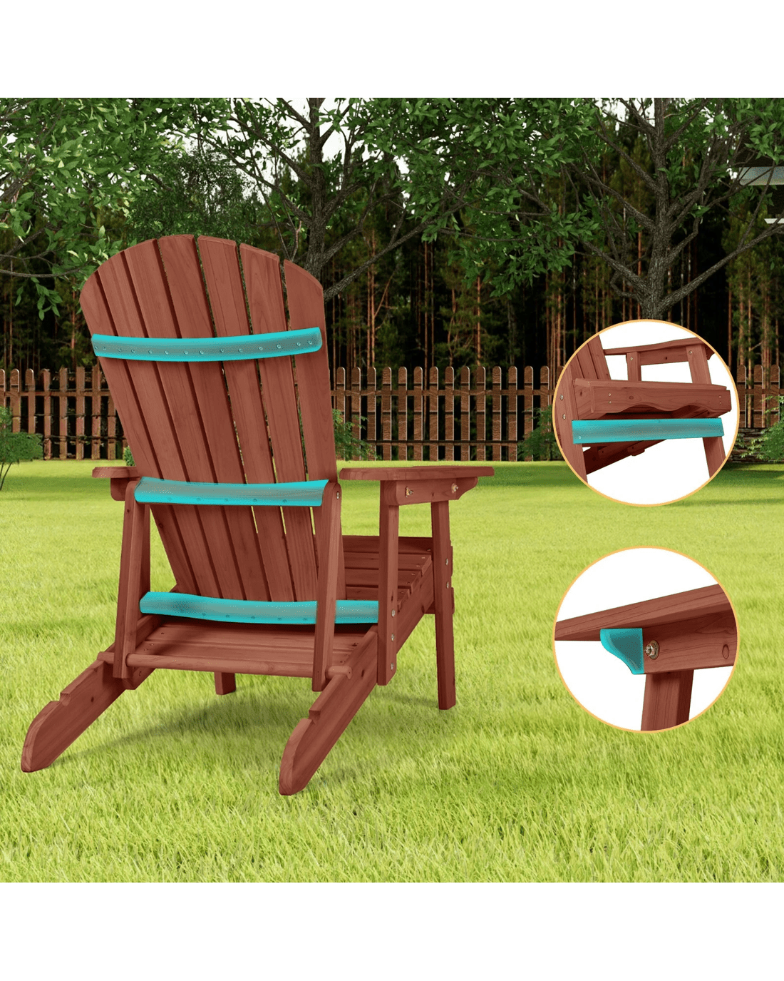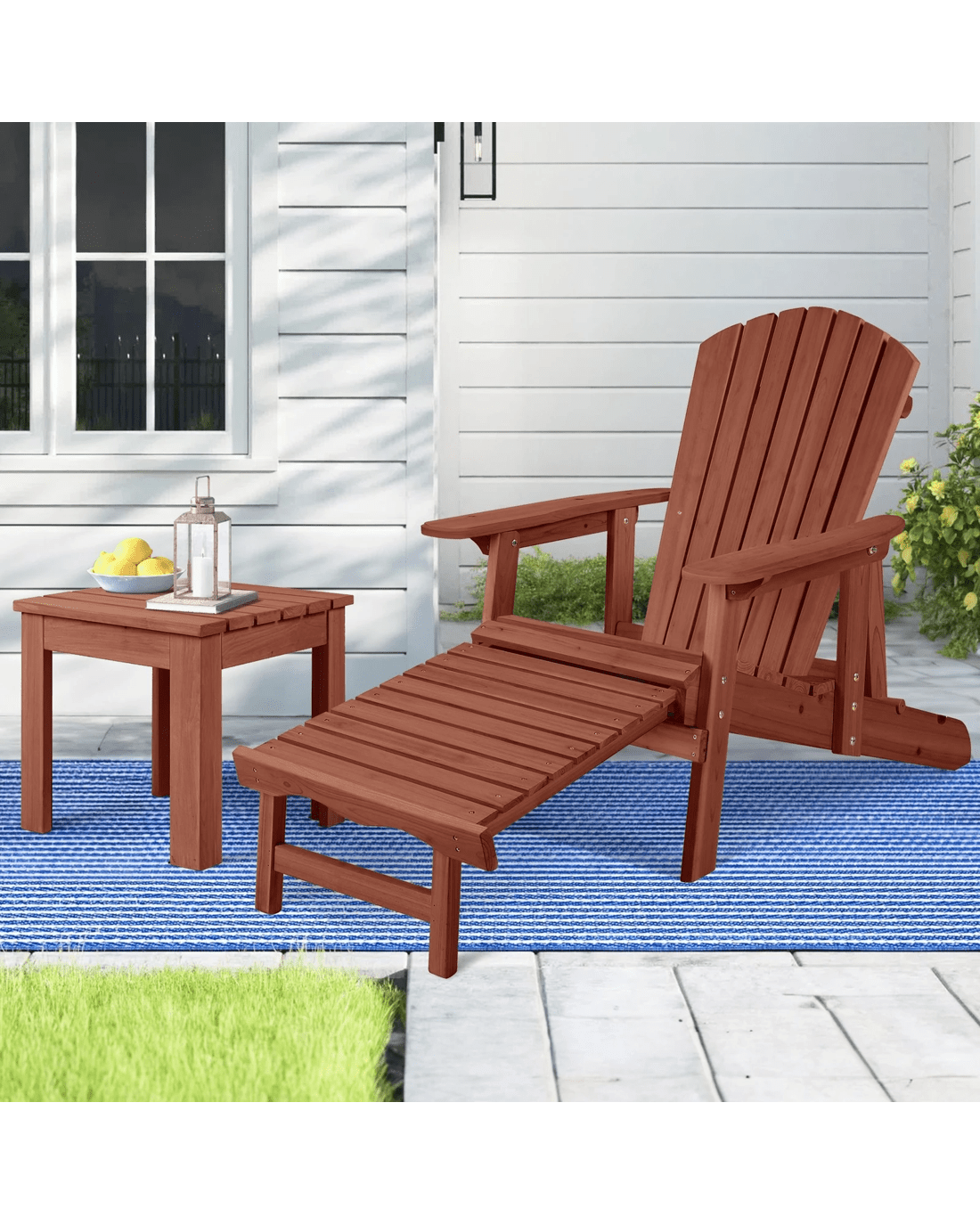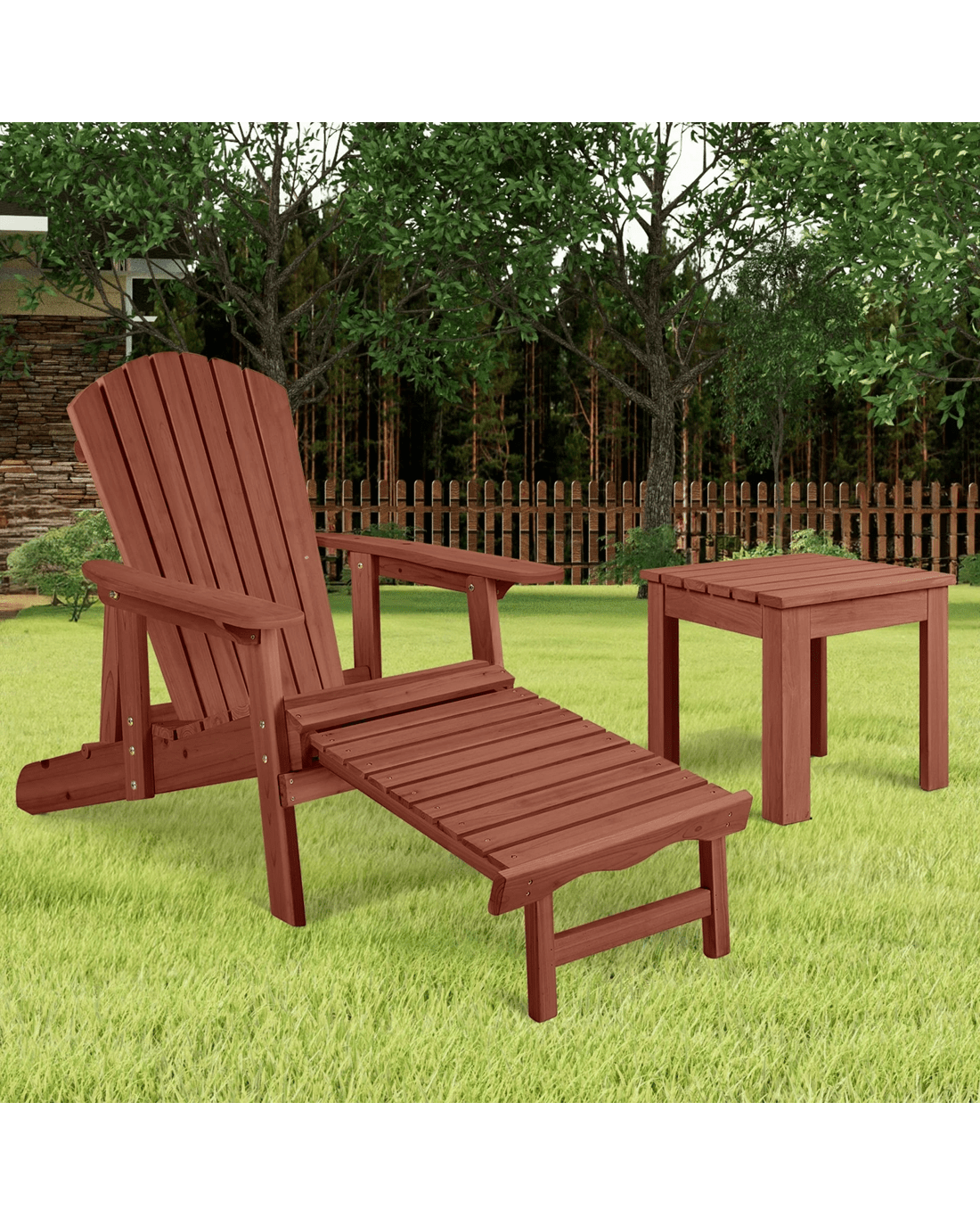 Alfordson Adirondack Chair Table 2PCS Set Outdoor Furniture w/ Ottoman - Brown