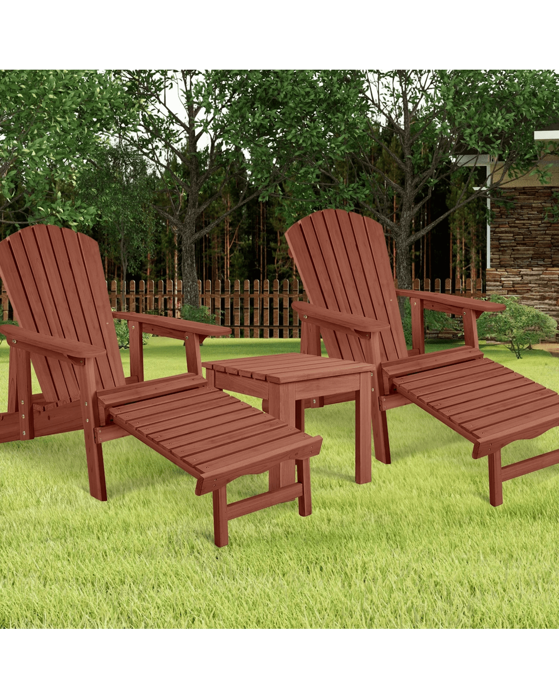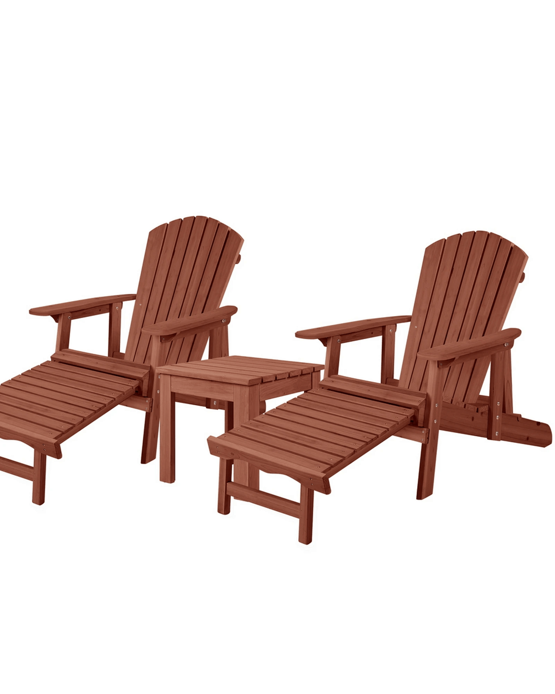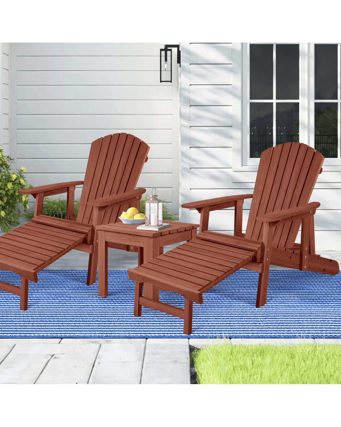 Alfordson Adirondack Chairs Table 3PCS Set Outdoor Furniture w/ Ottoman - Brown