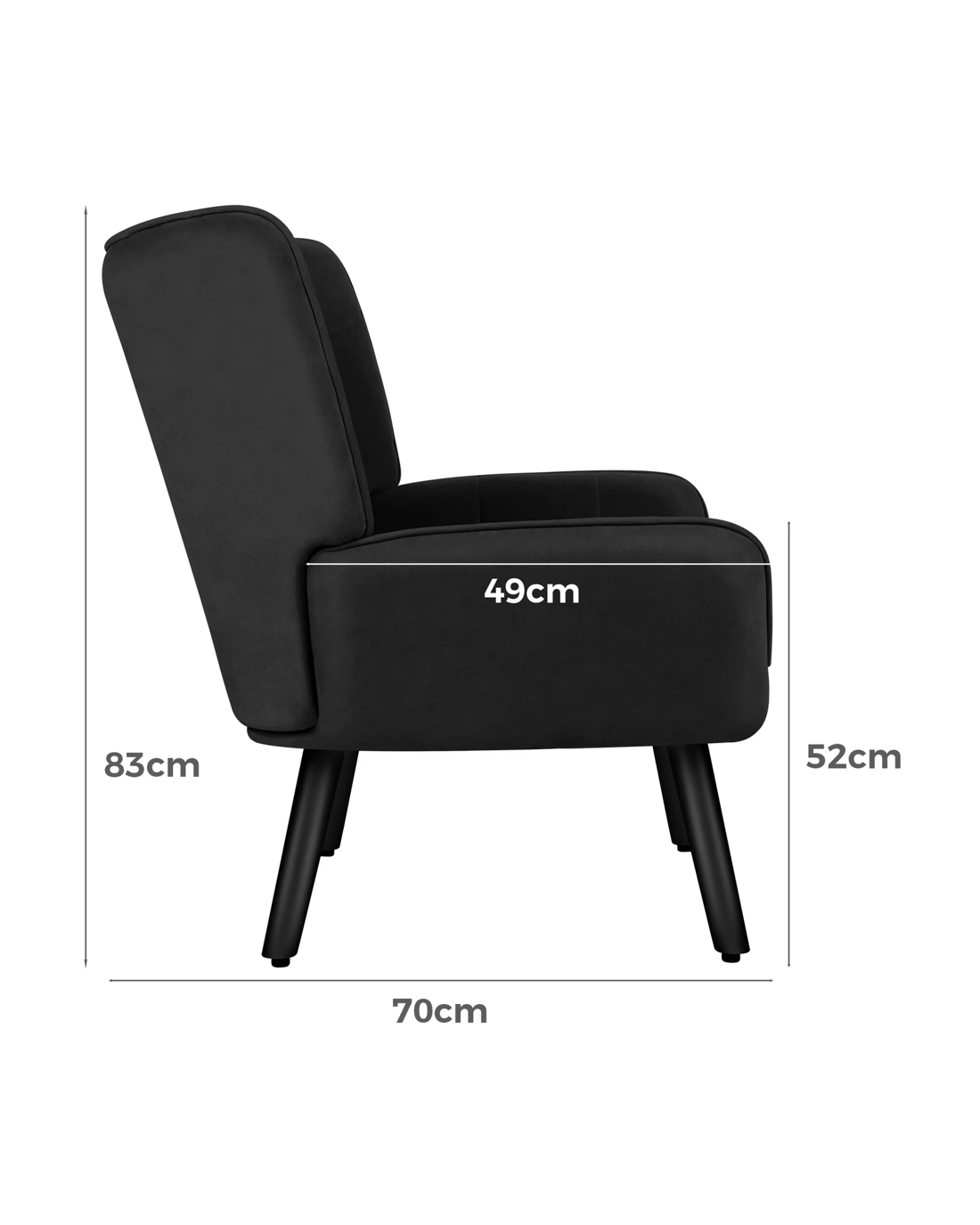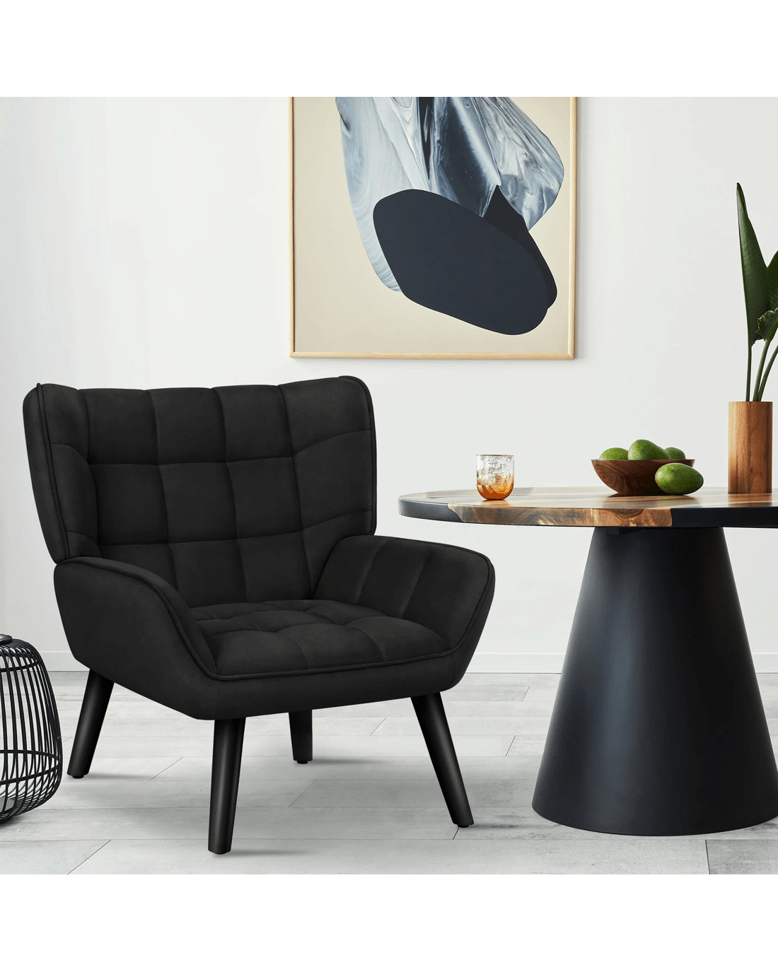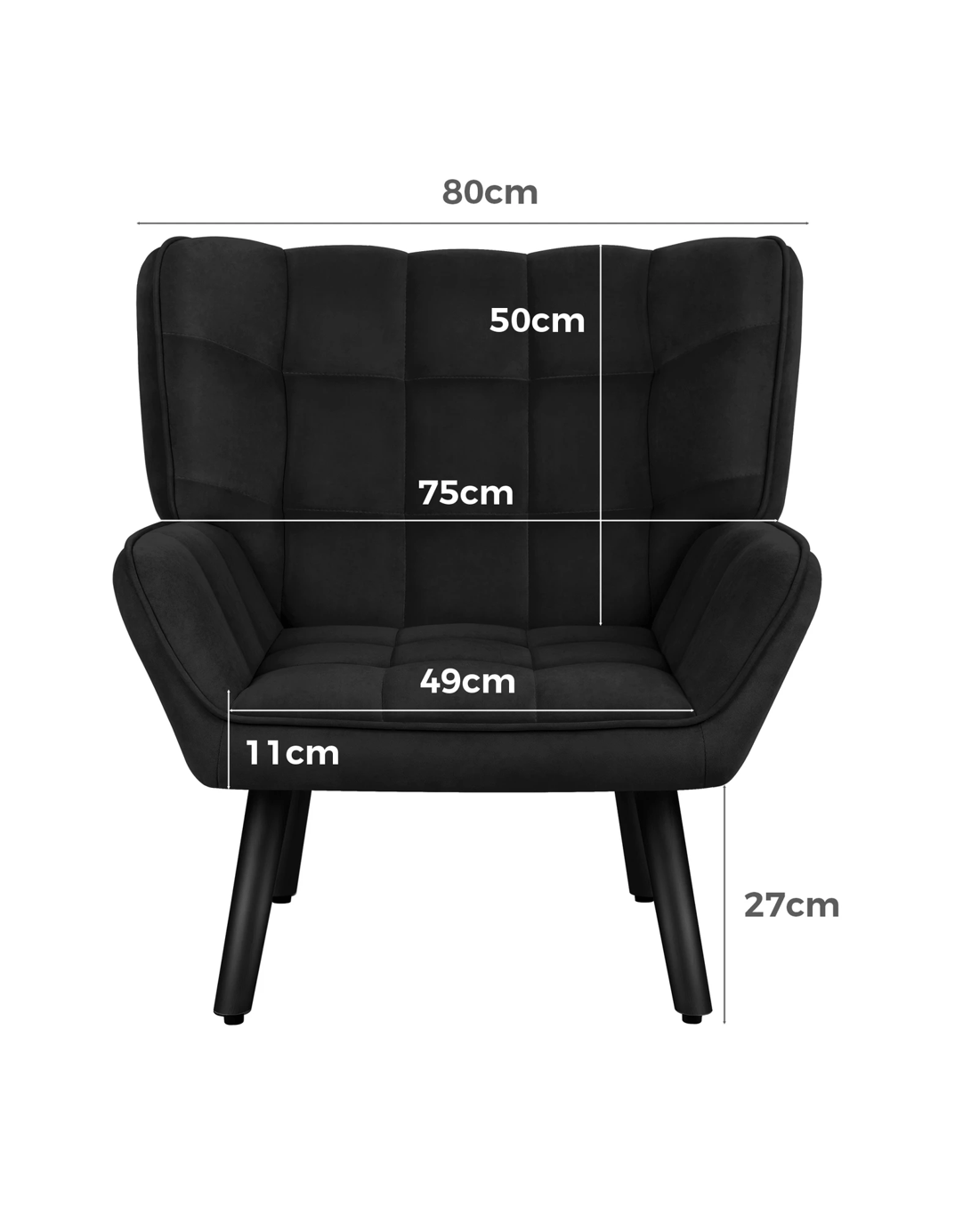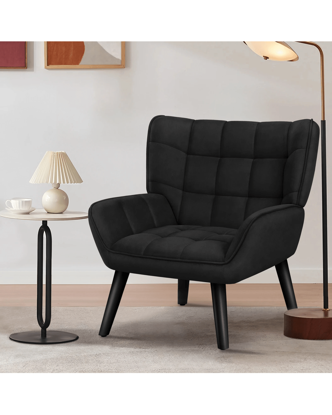 Alfordson Armchair Accent Chair Upholstered Lounge Sofa Tub Couch Velvet - Black
