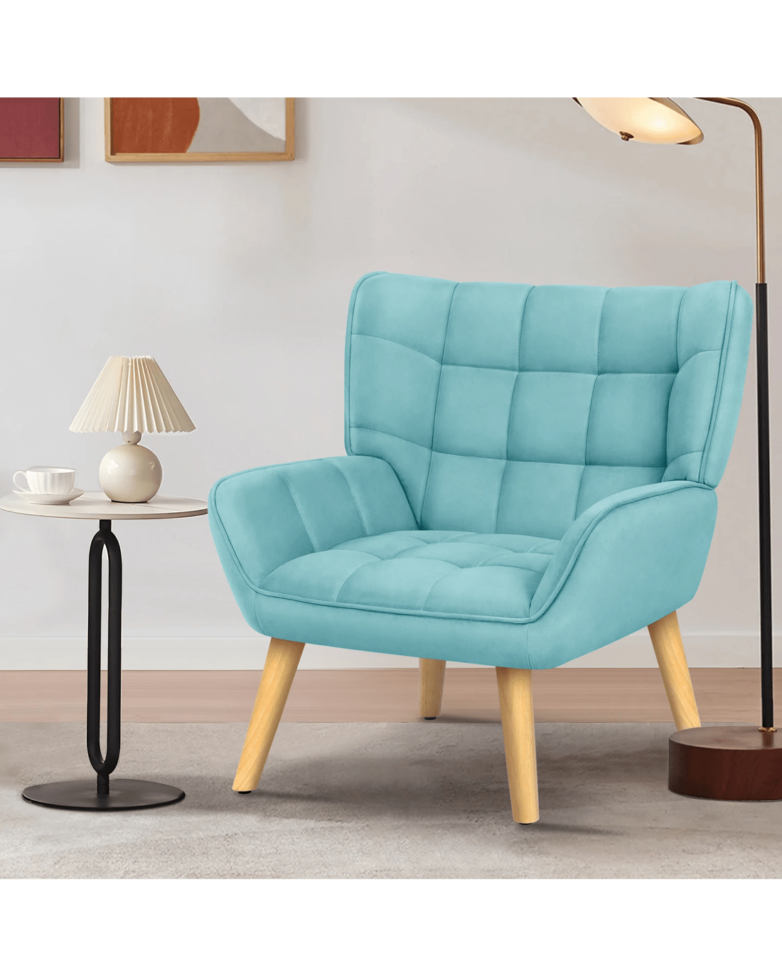 Alfordson Armchair Accent Chair Upholstered Lounge Sofa Tub Couch Velvet - Blue
